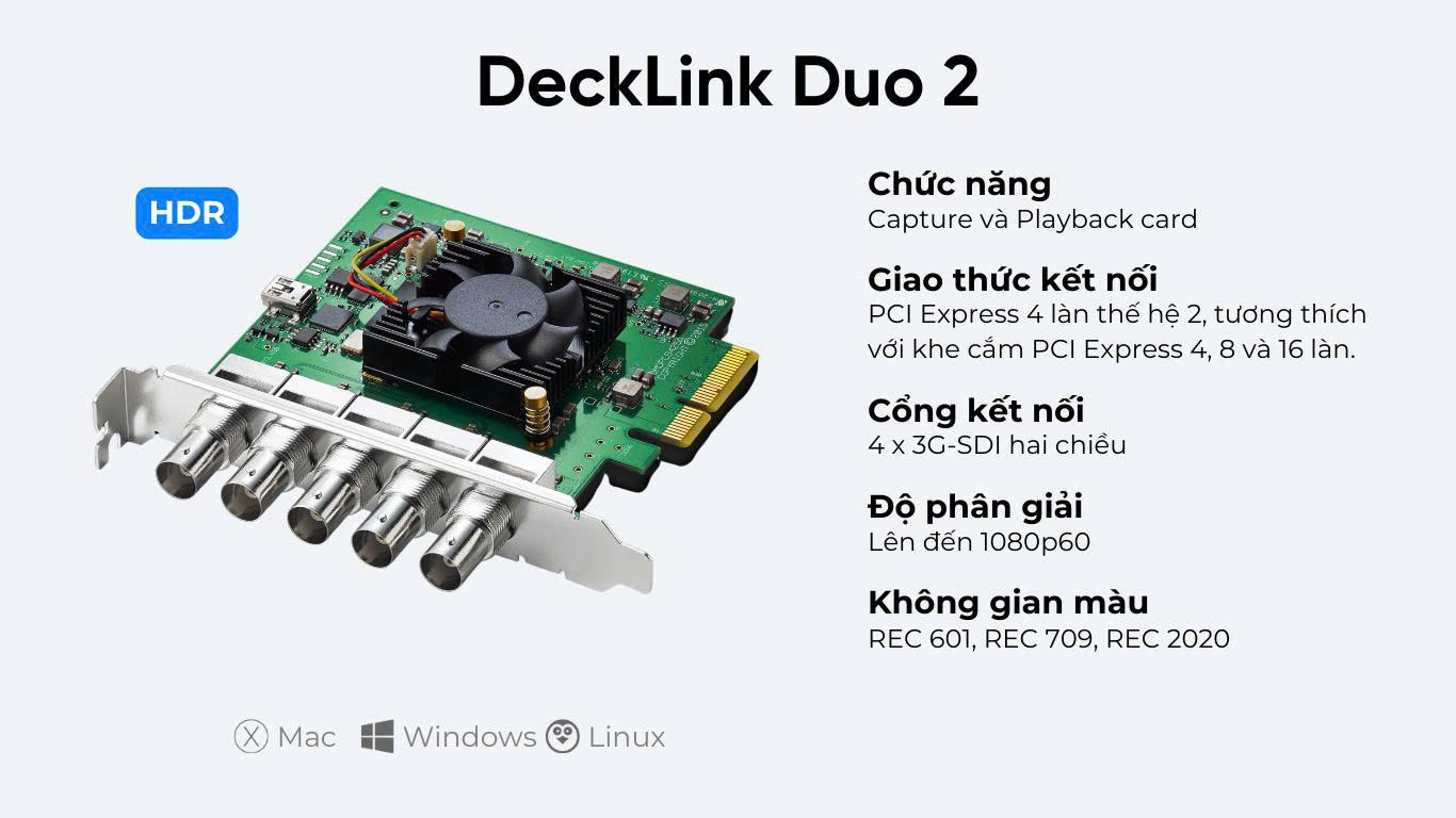 Blackmagic Design DeckLink Duo 2 (BDLKDUO2) – Card ghi hình & phát tín hiệu đa kênh cực mạnh, lựa chọn hàng đầu cho livestream, broadcast và sản xuất video chuyên nghiệp!
