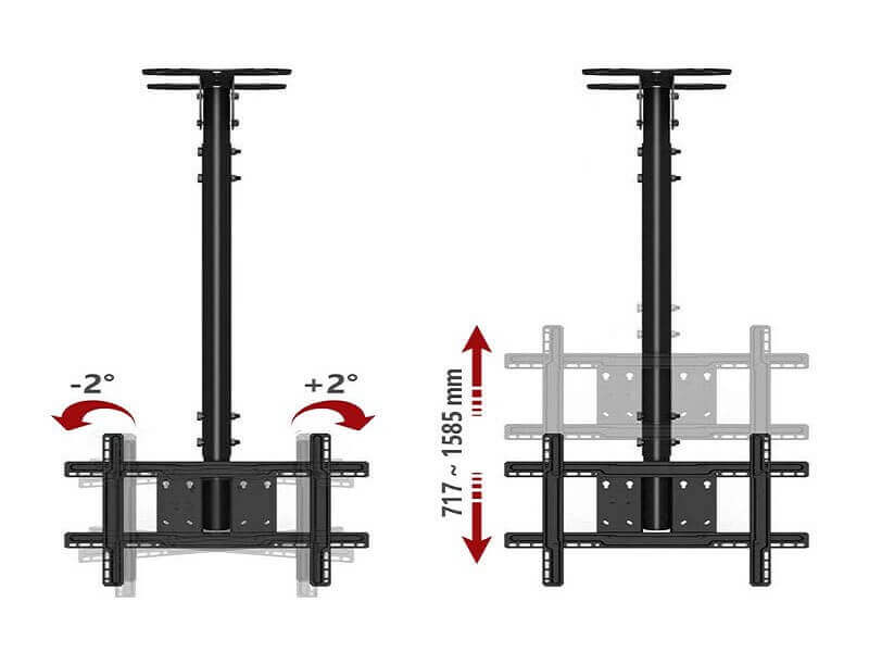 🔹 Phù hợp cho Tivi: 32" – 65" 🔹 Tải trọng tối đa: 50kg 🔹 Chuẩn VESA: 200x200 đến 600x400mm 🔹 Chiều cao có thể điều chỉnh: 1060 – 1560mm 🔹 Góc nghiêng: ±15° giúp điều chỉnh góc nhìn linh hoạt 🔹 Chất liệu: Thép sơn tĩnh điện cao cấp – bền bỉ, chống rỉ sét 🔹 Lắp đặt: Dễ dàng, chắc chắn – phù hợp cho quán cafe, nhà hàng, sảnh chờ, văn phòng