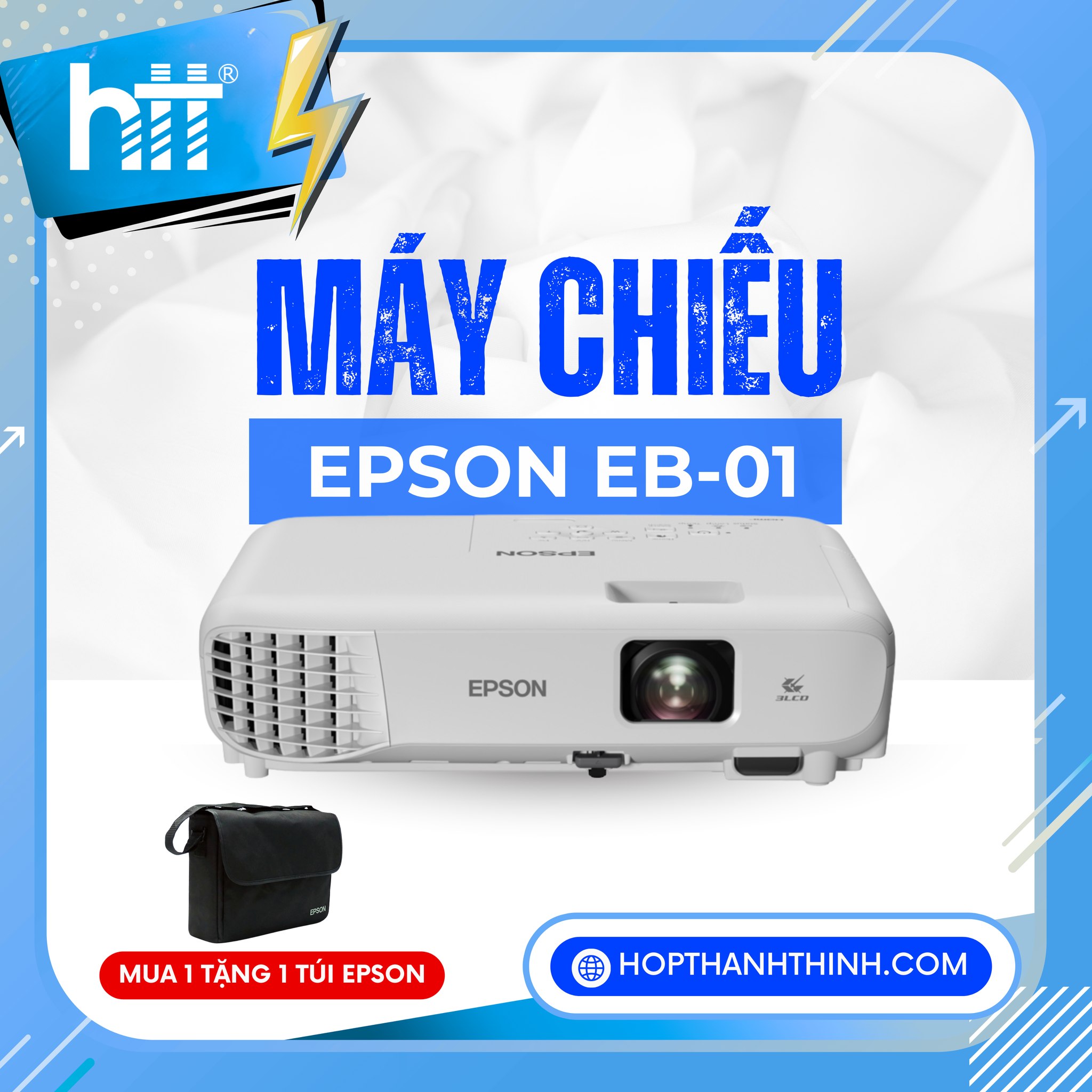 4. Ưu đãi đặc biệt cho trường học – Hàng xịn quà chất Khi mua máy chiếu Epson EB-E01 tại Hợp Thành Thịnh, khách hàng thuộc trường học và trung tâm đào tạo sẽ được tặng ngay phụ kiện cao cấp như màn chiếu, giá treo hoặc dây HDMI chính hãng. Số lượng quà tặng có hạn – nhanh tay để không bỏ lỡ cơ hội sở hữu combo trình chiếu hoàn hảo!