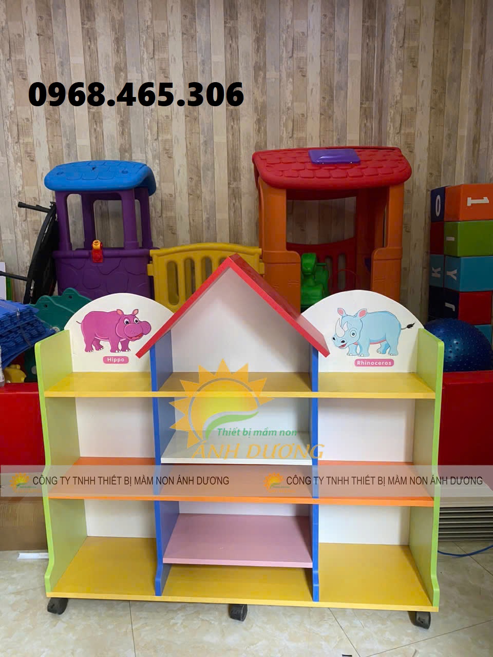 Kệ gỗ cao su mầm non, kệ nhà trẻ giá rẻ