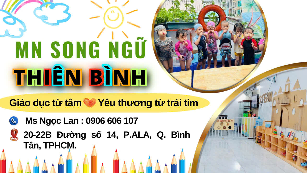 Mẫu giáo - Mầm non Song Ngữ Thiên Bình chiêu sinh trẻ từ 16 tháng đến 5 tuổi - Giữ trẻ ngoài giờ