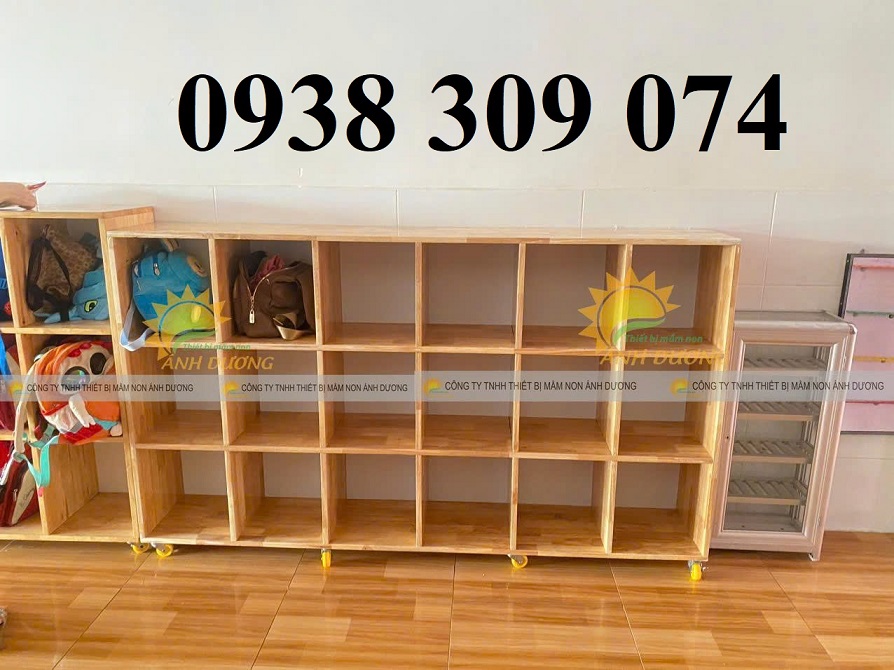 TỦ BALO MẦM NON- TỦ ĐỰNG CẶP DÉP MẪU GIÁO Chất liệu: Nhựa PP hoặc LLDPE nguyên sinh, an toàn và bền bỉ. Tủ gỗ đựng cặp mầm non là một vật dụng nội thất quan trọng trong các trường mầm non, được thiết kế đặc biệt để phục vụ nhu cầu lưu trữ đồ dùng, đồ chơi và tài liệu học tập của trẻ em và giáo viên Tủ được thiết kế theo tầng để dễ dàng trong việc lưu trữ đồ dùng giúp không gian được ngăn nắp và gọn để để bé có thể vui chơi một cách thoải mái. CÔNG TY THIẾT BỊ MẦM NON ÁNH DƯƠNG 54/19 Bùi Quang Là, Phường 12, Gò Vấp, Tp. Hồ Chí Minh 5/5 Tô Ký, ấp mới 2, Trung Chánh, Hóc Môn, TP.HCM HOTLINE: 0938 309 074