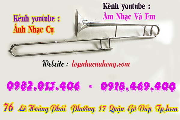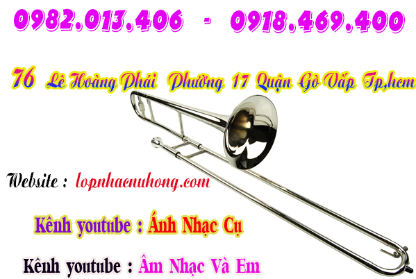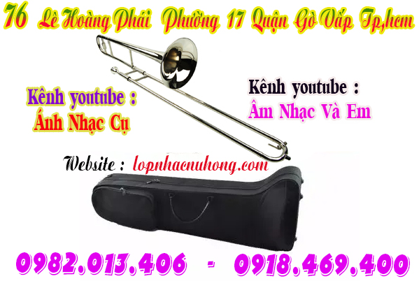Kèn trombone tại Gò Vấp ( Tp.Hồ Chí Minh ) Điện thoại : 0918.469.400 - 0982.013.406 (Thầy Cường - Cô Ánh). Địa chỉ: 76 Lê Hoàng Phái - Phường 17 - Quận Gò Vấp - Tp.HCM. BÁN KÈN TROMBONE Bán kèn trombone các loại trombone Yamaha, kèn trombone Suzuki, kèn trombone victorya USA… mẫu mã đẹp, piston bằng nhôm nổi tiếng về độ tốt và bền, nhẹ hơi. Âm thanh tuyệt vời. Kèn trombone có ba giọng: Alto, Tenor và Basse. Trong dàn nhạc giao hưởng, phổ biến nhất là Trombone Tenor. Ở âm vực cực trầm, trombone tối, đe dọa, nặng nề, được dùng làm âm nền. Càng lên cao, âm sắc trombone càng sáng và khỏe hơn. Âm vực giữa là tốt nhất, mềm mại hoặc mãnh liệt. Lên âm vực cao sẽ căng thẳng, mất tự nhiên. Điều khiển bằng ống hơi nên trombone không thể linh hoạt như trompette, câu nhạc cũng không dài vì ảnh hưởng thế tay. Trong dàn nhạc, trombone sử dụng cho các nét chấm phá, góp tiếng mãng liệt cùng bộ đồng. Trombone có thể độc tấu giai điệu hùng tráng hay diễn tả thúc giục, kêu gọi. Trombone cũng giữ vai trò hòa âm hay nhấn tiết tấu ở các đoạn cao trào. Nhạc cụ Nụ Hồng luôn nhập những mẫu kèn trombone chất lượng bền, đẹp, âm thanh hay và giá cả hợp lí cho quý khách hàng. Chuyên bán các loại nhạc cụ thổi: kèn clarinet, kèn saxophone, kèn trumbet, kèn orcarina, kèn pianica, kèn kazoo, kèn môi, sáo flute, sáo trúc 6 lỗ, sáo trúc 10 lỗ, sáo tàu (sáo dizi), sáo huân (huyên), sáo mèo ngang, sáo mèo dọc, sáo mèo kép, sáo mèo Việt Nam, sáo vỗ, sáo bầu, sáo rút, sáo gỗ, sáo mũi, sáo quạt, động tiêu, tiêu trúc , tiêu gỗ, tiêu nhựa (recoder), tù và… Cửa hàng nhạc cụ - lớp nhạc - cơ sở sản xuất đàn Nụ Hồng. Dạy: Piano - Organ - Trống - Guitar . Mua - bán - sửa chữa - cho thuê tất cả các loại nhạc cụ. Quý khách đến trực tiếp cửa hàng nhạc cụ Nụ Hồng để mua kèn trombone. Qúy khách có thể liên hệ qua : Zalo : 0918.469.400 Website 1 : lopnhacnuhong.com Website 2 : cuahangnhaccu.vn Kênh youtube 1 : Ánh Nhạc Cụ Kênh youtube 2 : Âm Nhạc Và Em Quý khách đến trực tiếp cửa hàng theo địa chỉ: Địa chỉ: 76 Lê Hoàng Phái - Phường 17 - Quận Gò Vấp - Tp.HCM. (Gần ngã tư: Nguyễn Oanh - Nguyễn Văn Lượng) Có ship COD toàn quốc. Hotline: 0918.469.400 - 0982.013.406 (Thầy Cường - Cô Ánh)
