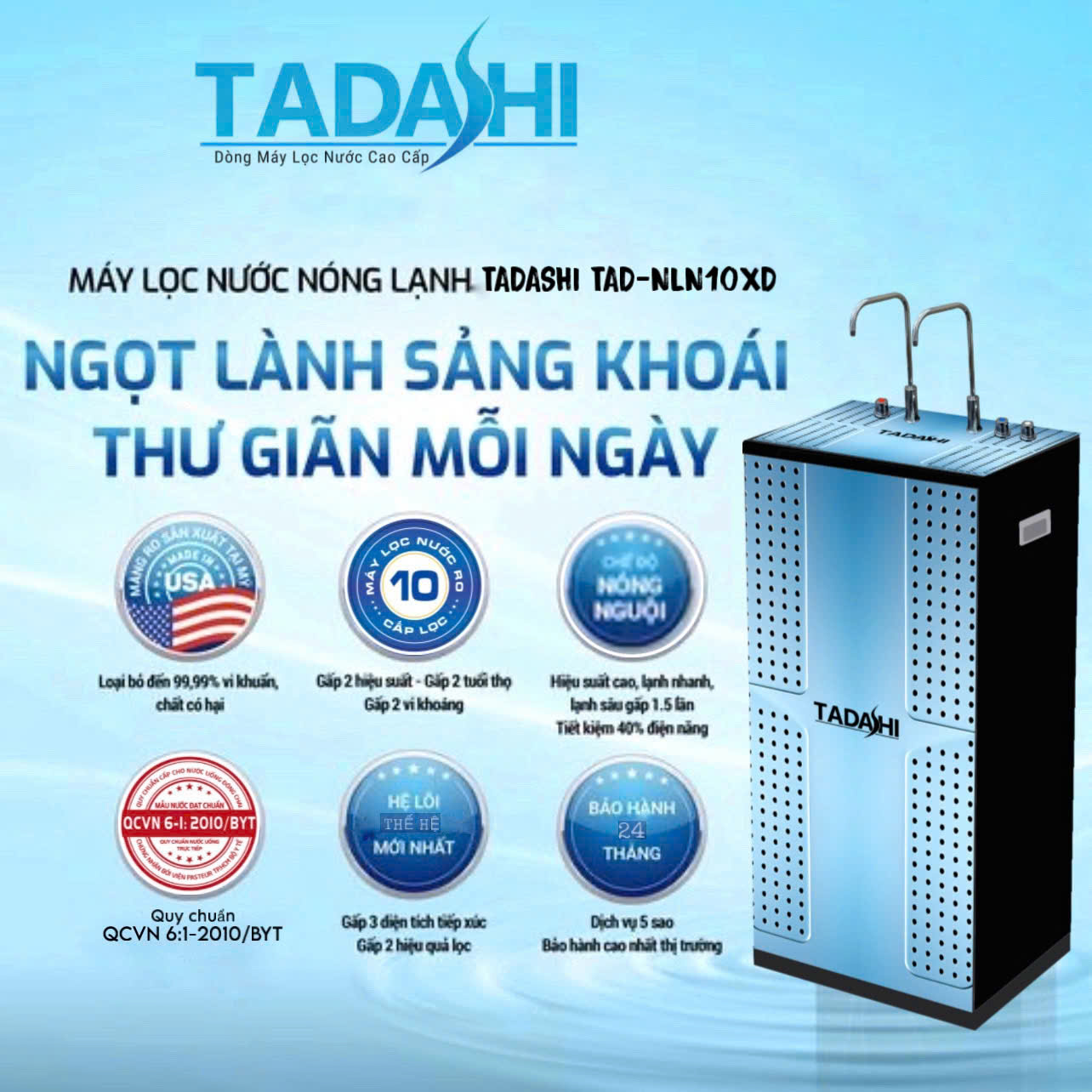 Máy lọc nước RO nóng lạnh nguội Tadashi TAD-NLN10XD CÔNG NGHỆ THÔNG MINH, SẢNG KHOÁI MỖI NGÀY -------------------- Tadashi TAD-NLN10XD mang đến một trải nghiệm tuyệt hảo hơn cho bạn và cả gia đình an tâm sống khỏe, thư giãn mỗi ngày nhờ: HIỆN ĐẠI & TIỆN NGHI - 3 chế độ nóng - lạnh - nguội đáp ứng mọi nhu cầu nước uống - 10 lõi công nghệ thế hệ mới – gấp đôi hiệu suất, gấp đôi tuổi thọ, bổ sung khoáng chất có lợi cho cơ thể - Nước sau lọc đạt chuẩn tinh khiết đóng chai QCVN:6-1/2010-BYT - Thiết kế thời thượng với tủ kính tràn viền, phù hợp không gian gia đình hiện đại. 👍AN TÂM HƠN VỚI CHẾ ĐỘ BẢO HÀNH 24 THÁNG. Sản phẩm xem tại đây: https://www.maylanhabc.com.vn/may-loc-nuoc-ro-tadashi... --------------------- Liên hệ ngay CÔNG TY CỔ PHẦN CƠ ĐIỆN LẠNH ABC - NHÀ PHÂN PHỐI ĐỘC QUYỀN MÁY LỌC NƯỚC RO AMIDA & TADASHI 📞Hotline: 1900 96 96 20 📍Địa chỉ: 421 Trường Chinh, P.14, Q. Tân Bình, TP. HCM https://www.sieuthimaylocnuoc.com.vn/ https://www.maylanhabc.com.vn/ https://www.amida.com.vn/ https://www.tadashi.com.vn/ #Amida #Tadashi #CotLocComposite #HeThongLocNuocTong #NuocSinhHoatSach #VanTuDong #MayLocNuocGiaDinh #AnTamSongKhoe #LocPhan #LocKimLoaiNang #NhaSachNuocXanh #AmidaVietnam
