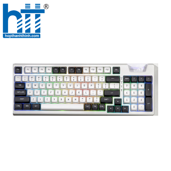 The Fuhlen H95S Panda 3 Mode Wireless Mechanical Keyboard features a durable case made from high-quality hard plastic, delivering a sturdy and reliable feel. The four softly rounded corners combined with a clean white color scheme create a refined and elegant appearance. Its slightly textured surface adds a premium touch, comparable to high-end mechanical keyboards on the market, making it visually appealing at first glance.