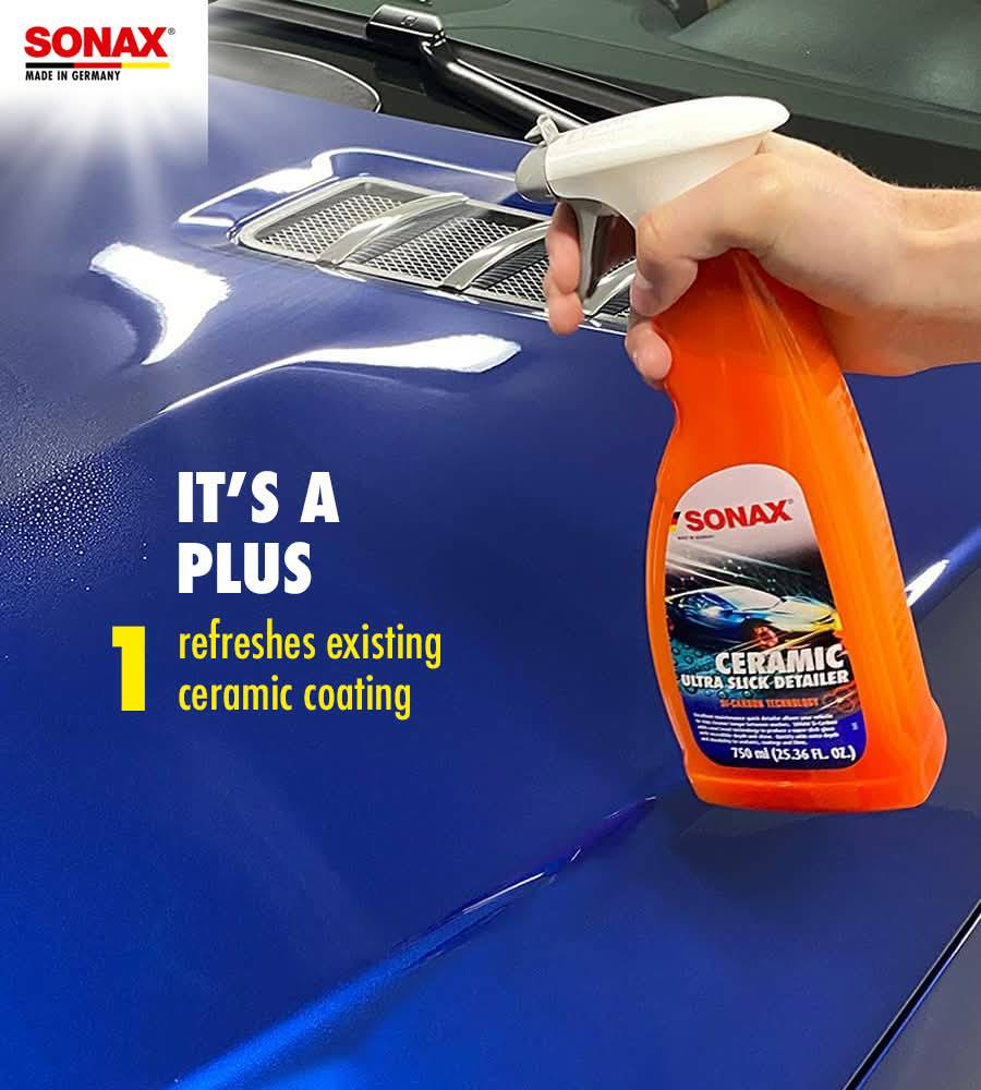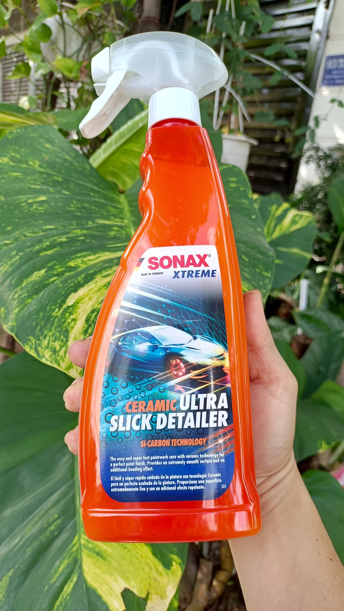 Sonax Xtreme Ceramic Ultra Slick Detailer 268400 là sản phẩm xịt nhanh chăm sóc và bảo vệ bề mặt sơn xe, giúp tăng cường độ bóng và tạo lớp phủ kỵ nước. Sản phẩm này sử dụng công nghệ Si-Carbon tiên tiến của Đức để mang lại hiệu quả cao và sử dụng đơn giản. Đặc điểm nổi bật + Công nghệ Si-Carbon: Tạo lớp màng mịn màng với độ bóng sâu và lấp lánh như gương ngay sau khi sử dụng. + Hiệu ứng kỵ nước: Giúp nước và bụi bẩn trượt đi dễ dàng, chống bám nước và làm cho bề mặt sơn dễ dàng vệ sinh hơn. + Bảo vệ lớp phủ: Sản phẩm có khả năng làm mới và tăng cường lớp phủ ceramic đã có, cũng như bảo vệ sơn xe khỏi các tác nhân gây hại từ môi trường. + Làm sạch nhẹ: Có thể loại bỏ các vết bẩn nhẹ như bụi, dấu vân tay một cách nhanh chóng mà không để lại vệt. + Dùng cho mọi màu sơn: Phù hợp sử dụng cho tất cả các màu sơn xe, kể cả các xe đã phủ ceramic hoặc dán decal một phần hoặc toàn bộ. Hướng dẫn sử dụng hiệu quả + Làm sạch bề mặt: Rửa xe sạch sẽ và lau khô hoàn toàn. + Lắc đều: Lắc kỹ chai trước khi sử dụng. + Xịt sản phẩm: Xịt một lượng nhỏ dung dịch lên bề mặt sơn hoặc xịt vào một khăn siêu sợi sạch. + Thoa đều: Dùng khăn thoa đều lên bề mặt. + Lau lại: Dùng một khăn siêu sợi khô và sạch khác để lau lại, đánh bóng bề mặt. Lưu ý: Tránh sử dụng trên bề mặt sơn còn nóng và tránh xịt quá nhiều để không gây vệt Mua hàng 0979792582 Car Care Mart - Chăm sóc xe oto chuyên nghiệp