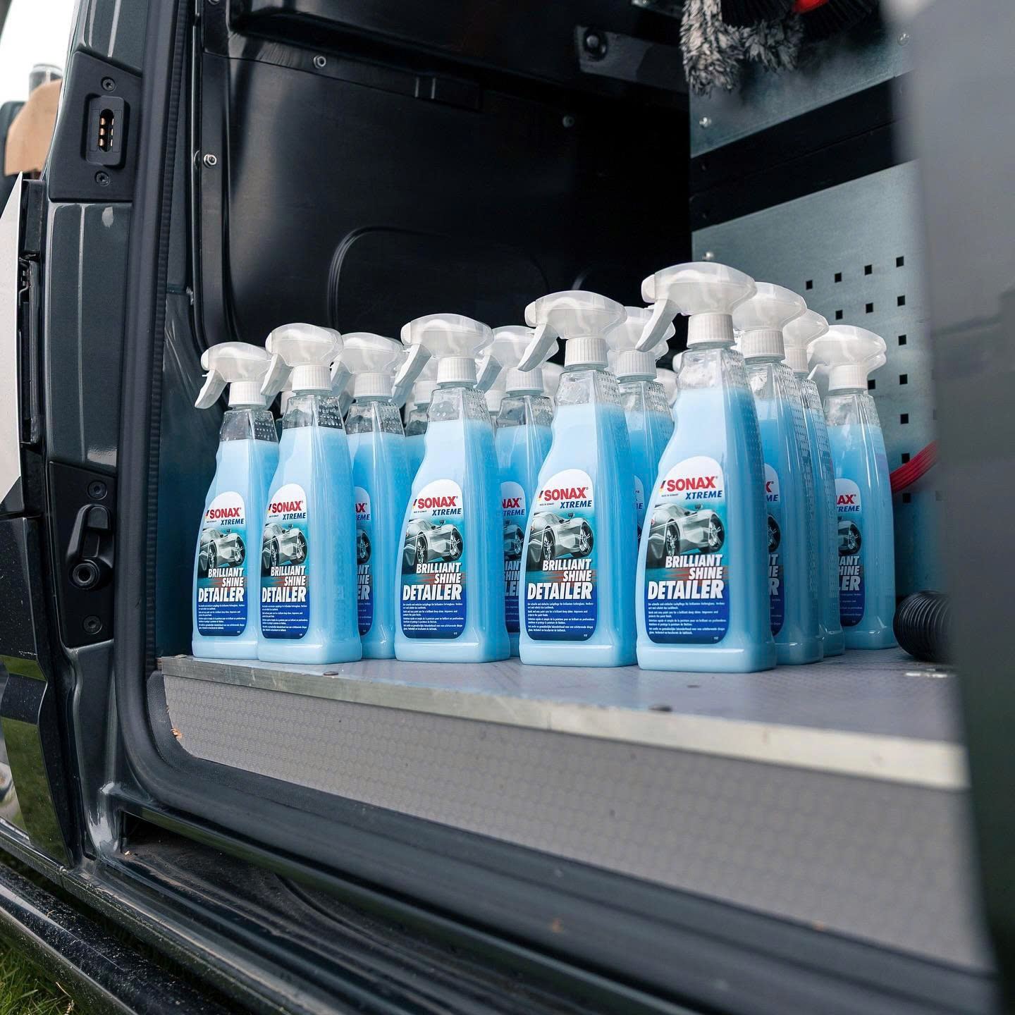 Sonax Xtreme Brilliant Shine Detailer là dung dịch xịt bóng nhanh dành cho xe hơi, được sản xuất tại Đức. Sản phẩm giúp làm sạch nhẹ nhàng và tăng cường độ bóng cho bề mặt sơn, đồng thời tạo ra hiệu ứng chống thấm nước mạnh mẽ. Đặc điểm và công dụng Làm sạch nhẹ nhàng: Dung dịch này có thể loại bỏ bụi bẩn, dấu vân tay và các vết bẩn nhẹ khác trên bề mặt sơn một cách nhanh chóng và triệt để mà không gây trầy xước. Tăng cường độ bóng: Sản phẩm mang lại độ bóng sâu, lấp lánh và mịn màng cho bề mặt sơn ngay sau khi sử dụng. Hiệu ứng chống thấm nước (lá sen): Nhờ công thức đặc biệt, Sonax Xtreme Brilliant Shine Detailer tạo ra một hiệu ứng chống thấm nước mạnh mẽ, giúp nước mưa và bụi bẩn khó bám lại trên bề mặt sơn, giữ cho xe sạch lâu hơn. Dễ dàng sử dụng: Chỉ cần xịt và lau sạch, phù hợp để sử dụng sau khi rửa xe hoặc để duy trì độ bóng hàng ngày. Làm mới lớp bảo vệ: Sản phẩm giúp làm mới và kéo dài tuổi thọ của các lớp bảo vệ hiện có như sáp hoặc lớp phủ polyme. Tương thích với nhiều bề mặt: Có thể sử dụng cho cả sơn bóng, sơn mờ và lớp dán bảo vệ (wrap). Các phiên bản sản phẩm Chai xịt 750ml: Phiên bản phổ biến và tiết kiệm cho người dùng cá nhân. Can 5L (Profiline): Phiên bản dành cho các trung tâm chăm sóc xe chuyên nghiệp hoặc người dùng có nhu cầu sử dụng thường xuyên. Hướng dẫn sử dụng Rửa sạch xe: Rửa xe sạch và lau khô bề mặt sơn bằng khăn mềm hoặc khăn da. Lắc đều: Lắc kỹ chai Sonax Xtreme Brilliant Shine Detailer trước khi sử dụng. Mở khóa đầu phun: Xoay vòi phun 180° để mở khóa. Phun: Phun một lượng dung dịch vừa đủ lên bề mặt sơn, làm từng phần một. Lau sạch: Dùng khăn microfiber sạch và mềm để lau đều và đánh bóng bề mặt sơn cho đến khi đạt được độ bóng tối đa.