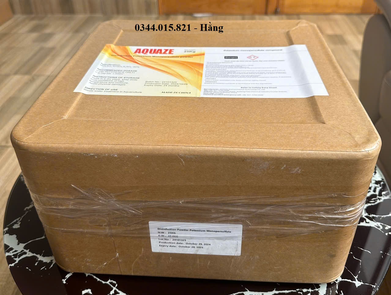 Potassium monopersulfate – AQUAZE sát trùng, diệt khuẩn an toàn, phổ rộng (Hợp Chất Kali Monopersulfate) Tên gọi: Kali Monopersulfate, Potassium monopersulfate Công thức hóa học: 2KHSO5.KHSO4.K2SO4 Ngoại quan: Kali Monopersulfate là một dạng hạt và dạng viên màu hồng (màu trắng), chảy tự do và hòa tan trong nước. *Thành phần của Kali Monopersulfate là hợp chất bao gồm kali hydro peroxymonosulfate (KHSO5), Kalibisulfate (KHSO4) và kali sulfat (K2SO4). Quy Cách: 20 Kg/Thùng(5 Kg/Xô) , 25 Kg/Thùng, 25 Kg/Thùng (Viên) *Xuất xứ: Trung Quốc *Công Dụng: - Kali Monopersulfate là hợp chất oxy hóa hiệu quả cao và chất khử trùng nước trong ao nuôi tôm cá, cung cấp oxy trong nuôi trồng thủy sản, cải thiện nước trong nuôi, giảm khí độc trong ao. Ức chế các vi sinh vật gây bệnh, tiêu diệt các loại vi khuẩn, virus, nấm, khử trùng dụng cụ trong ao nuôi. - Thời gian xử lý nước nhanh, an toàn sau 24h, rút ngắn thời gian chờ thả giống. - Không cắt tảo khi dùng đúng liều lượng quy định. Liều dùng: - Trong quá trình nuôi: 0,5 - 1 kg/ 1.000 m3 nước, định kỳ 10 - 15 ngày/lần. Bảo quản: Giữ nơi khô ráo, thoáng mát. Giữ chặt cho đến khi sử dụng. --------------------- Quý Khách Hàng quan tâm sản phẩm vui lòng liên hệ để biết thêm thông tin: Công Ty Cổ Phần BQ&Q Địa chỉ: H75 KDC Thới An, Đ. Lê Thị Riêng, P.Thới An, Quận 12, TPHCM Điện thoại: 0914 922 178 /Zalo: 0344 015 821 (Ms. Hằng)