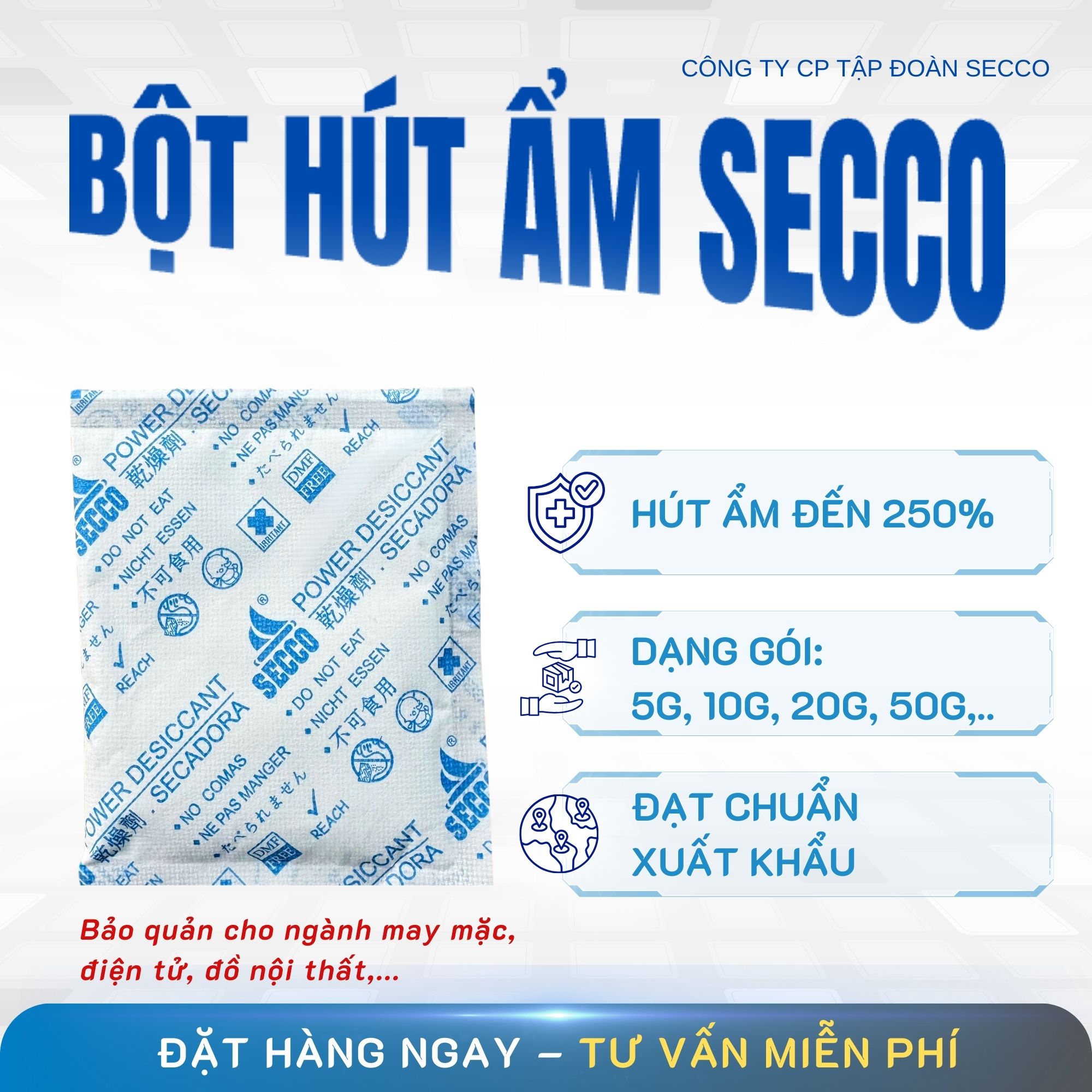 Bột Hút Ẩm SECCO – Giải pháp chống ẩm tối ưu cho mọi ngành hàng. SECCO cung cấp bột hút ẩm công nghiệp với khả năng hút ẩm lên đến 400%, hiệu quả bảo quản đến 60 ngày, giúp ngăn ngừa ẩm mốc, mùi hôi và hư hỏng do độ ẩm gây ra.