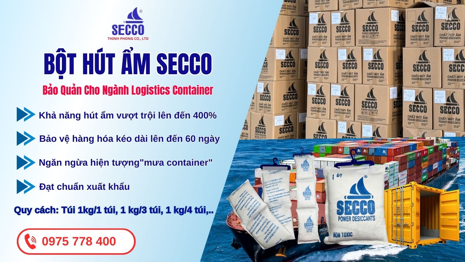 Trong vận chuyển đường biển, việc kiểm soát độ ẩm đồng đều trong không gian hẹp là thử thách lớn. Bột hút ẩm Secco 1000g với thiết kế dây 3 túi là cải tiến vượt trội, giúp tăng diện tích tiếp xúc và tối ưu hóa khả năng bảo vệ hàng hóa khỏi hiện tượng "mưa container".