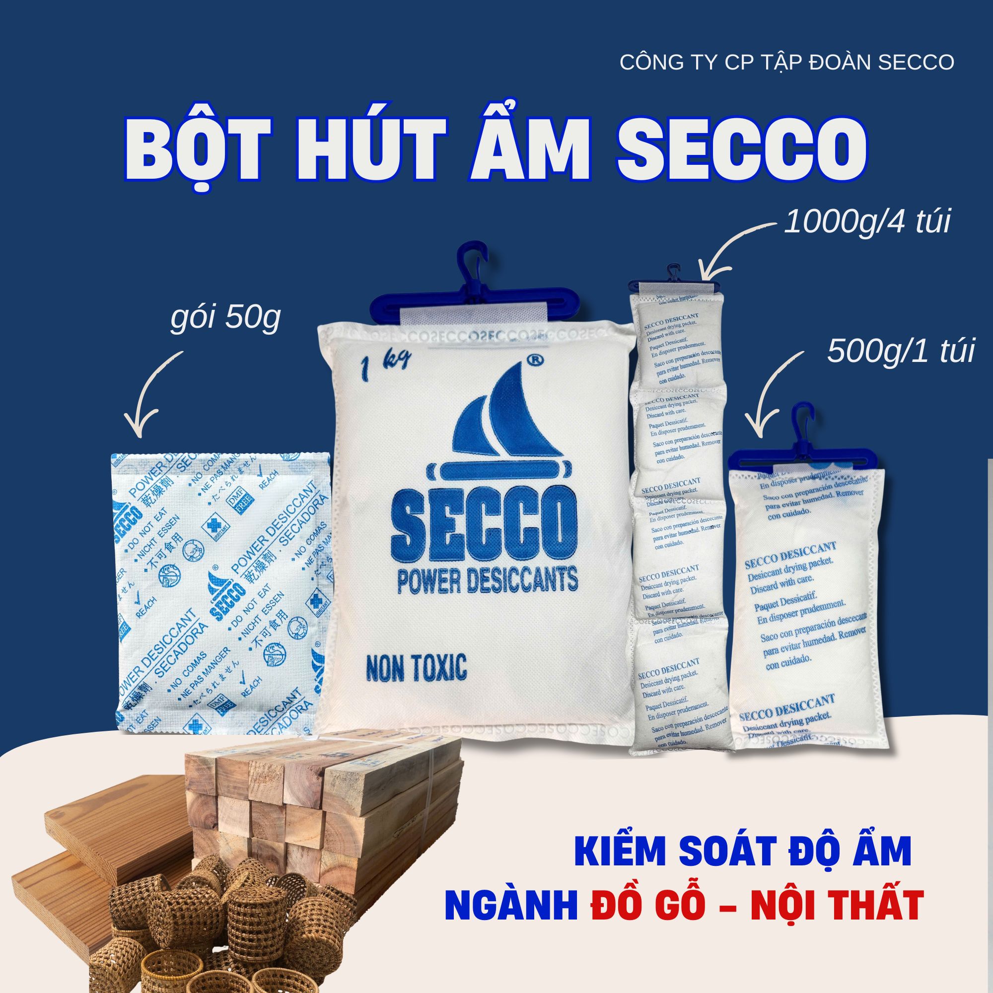Bột Hút Ẩm Secco 50gam - Bảo Quản Hàng Xuất Khẩu Hút 300%