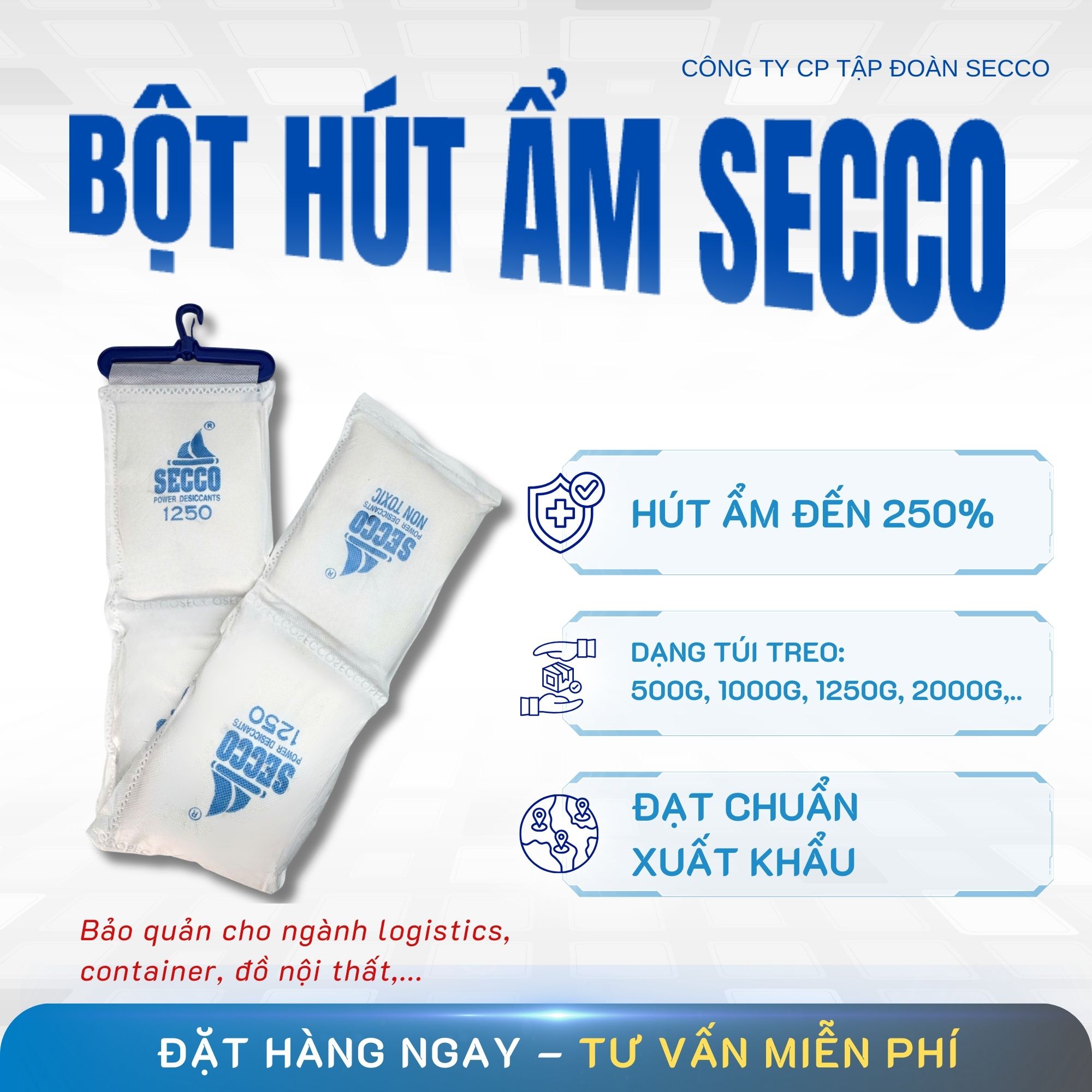 Bột Hút Ẩm Secco - Bột Chống Ẩm Secco 1.250g dạng túi treo . Chuyên Dùng để bảo hàng hóa xuất khẩu cho container, ngành logistics - Chống ẩm mốc trong quá trình vận chuyển và lưu kho - Hút ẩm hiệu quả lên đến 250% - Giá thành tiết kiệm gấp 10 lần so với lay và 8 lần Silicagel - Đa dạng kích thuocs dạng túi treo: 500g, 1000g, 1250g, 2000g.. - Giá cạnh tranh tại nhà máy - Sản phẩm đạt chuẩn xuất khẩu Liên hệ ngay để được tư vấn và nhận mẫu thử miễn phí CÔNG TY CP TẬP ĐOÀN SECCO #bothutam #bothutamtreocontainer #bothutamsecco1000g #bothutamsecco1kg