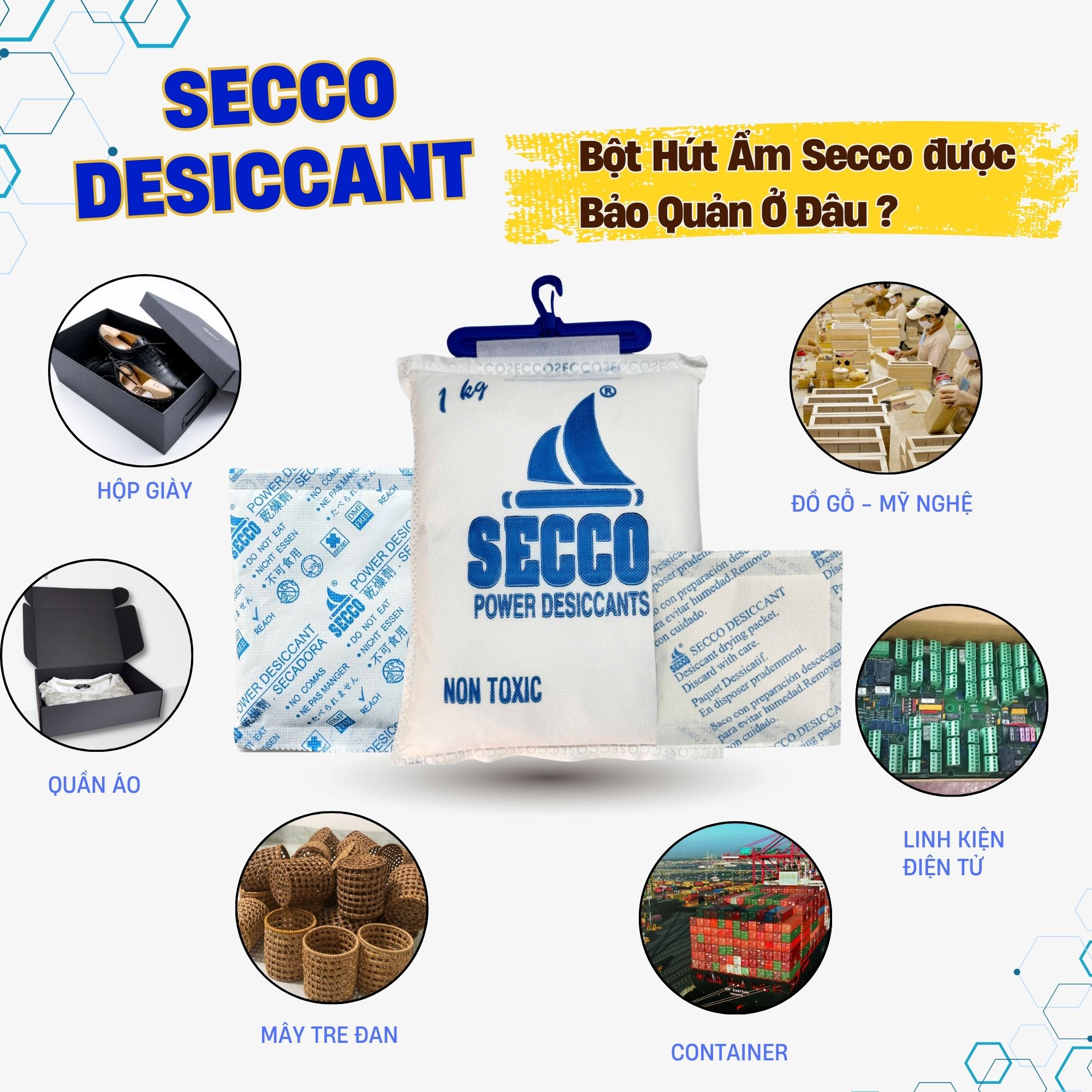 Dù là một hộp giày nhỏ bé hay một container hàng hóa khổng lồ lênh đênh trên biển, Bột hút ẩm Secco luôn có mặt để đảm bảo sự khô thoáng tuyệt đối. Bạn sẽ tìm thấy Secco bảo vệ hàng hóa tại: