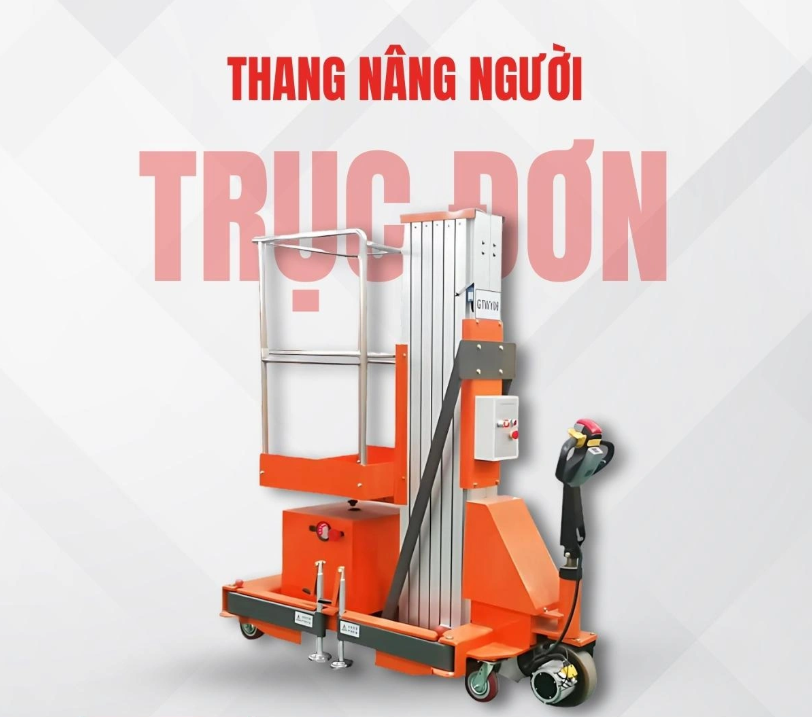 Trong nhiều ngành nghề như bảo trì nhà xưởng, kiểm kho, thi công quảng cáo hay vệ sinh công trình, nhu cầu làm việc ở trên cao ngày càng tăng. Điều này đòi hỏi thiết bị hỗ trợ phải vừa an toàn, vừa linh hoạt và dễ sử dụng. Trong số các dòng thiết bị nâng người hiện nay, thang nâng người trục đơn nổi bật nhờ thiết kế nhỏ gọn, dễ di chuyển và đặc biệt phù hợp cho các công việc trong không gian hẹp. Bài viết này sẽ phân tích chi tiết những đặc điểm quan trọng nhất của thang nâng người trục đơn, giúp người dùng hiểu rõ và lựa chọn đúng thiết bị khi cần.