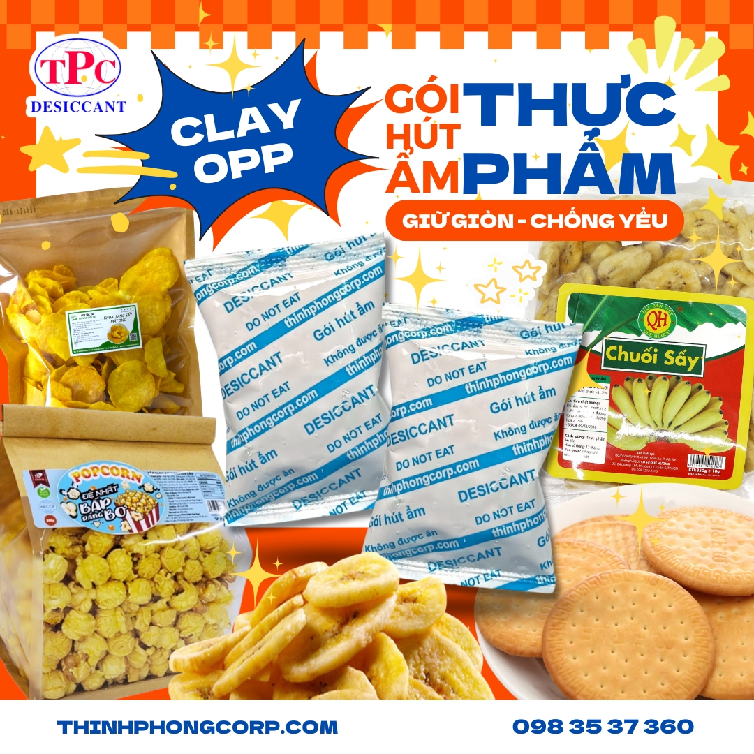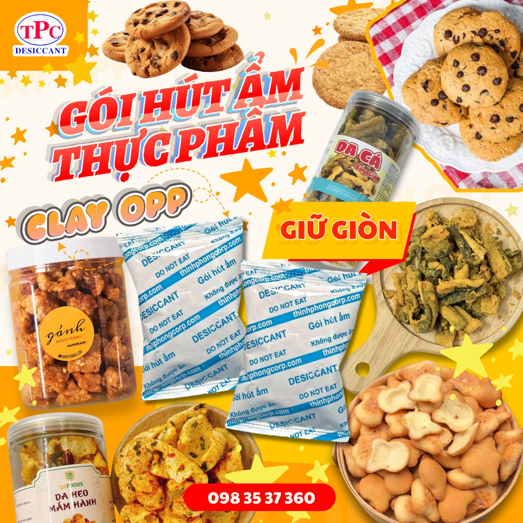 Giải pháp bảo quản đồ ăn vặt chống ẩm với gói hút ẩm Clay