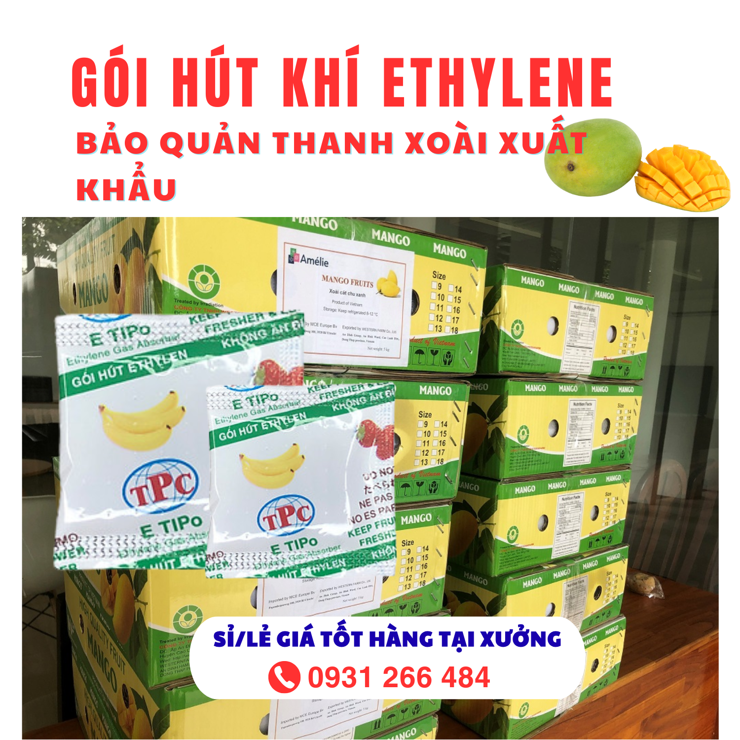 Xoài là một trong những loại trái cây nhiệt đới xuất khẩu chủ lực của Việt Nam. Tuy nhiên, đặc tính chín nhanh và dễ hư hỏng do khí Ethylen tự sinh khiến quá trình vận chuyển và bảo quản gặp nhiều khó khăn. 💨 Gói hút khí Ethylen Thịnh Phong là giải pháp tiên tiến giúp hấp thụ và trung hòa khí Ethylen phát ra trong quá trình chín, từ đó làm chậm quá trình hô hấp của trái cây, giúp xoài giữ được độ tươi ngon lâu hơn mà không cần dùng chất bảo quản hóa học.