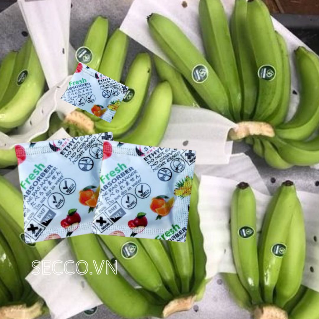 ✅ Tại sao chuối xuất khẩu cần dùng gói hút khí ethylene? Chuối là loại trái cây sinh khí ethylene mạnh, rất dễ chín nhanh khi đóng gói và vận chuyển. Nếu không kiểm soát kịp thời, chuối sẽ chín sớm, dễ mềm nhũn, thâm vỏ, gây hao hụt lớn và giảm chất lượng.