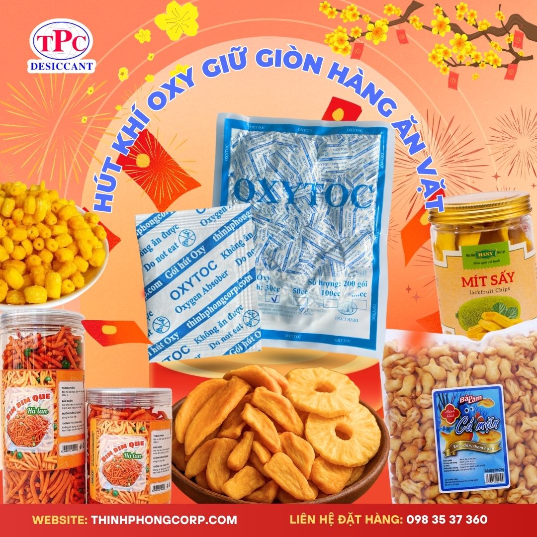 Gói hút oxy bảo quản thực phẩm – Giải pháp chống mốc an toàn và hiệu quả Trong quá trình sản xuất và kinh doanh thực phẩm, việc giữ sản phẩm luôn tươi ngon và không bị mốc là yếu tố quan trọng. Gói hút oxy (Oxygen Absorber) được xem là giải pháp tối ưu giúp bảo quản thực phẩm an toàn mà không cần dùng đến chất bảo quản hóa học. Nhờ khả năng loại bỏ toàn bộ oxy trong bao bì, gói hút oxy giúp ngăn chặn vi khuẩn hiếu khí, nấm mốc và côn trùng phát triển, từ đó kéo dài thời gian sử dụng của thực phẩm. Gói hút oxy đặc biệt phù hợp cho các sản phẩm như bánh mứt, hải sản khô, thịt khô, trái cây sấy, bột ngũ cốc, thực phẩm ăn liền và các loại nông sản. Khi đóng gói kèm theo gói hút oxy, sản phẩm giữ được hương vị tự nhiên, màu sắc đẹp và hạn chế tối đa tình trạng biến chất trong quá trình bảo quản. Ưu điểm lớn của gói hút oxy là hoàn toàn an toàn cho thực phẩm. Quá trình hấp thụ oxy diễn ra tự nhiên, không tạo ra chất độc hại, đáp ứng tiêu chuẩn bảo quản cho cả thị trường trong nước và xuất khẩu. Với những cơ sở sản xuất muốn tăng chất lượng sản phẩm và giảm rủi ro hư hỏng, gói hút oxy là lựa chọn không thể thiếu. Để đảm bảo hiệu quả bảo quản tốt nhất, nên chọn loại gói hút oxy phù hợp dung tích bao bì và hàm lượng oxy cần xử lý. Thịnh Phong cung cấp đa dạng dung tích gói hút oxy OXYTOC, chất lượng ổn định, thích hợp cho nhiều loại thực phẩm và quy mô sản xuất