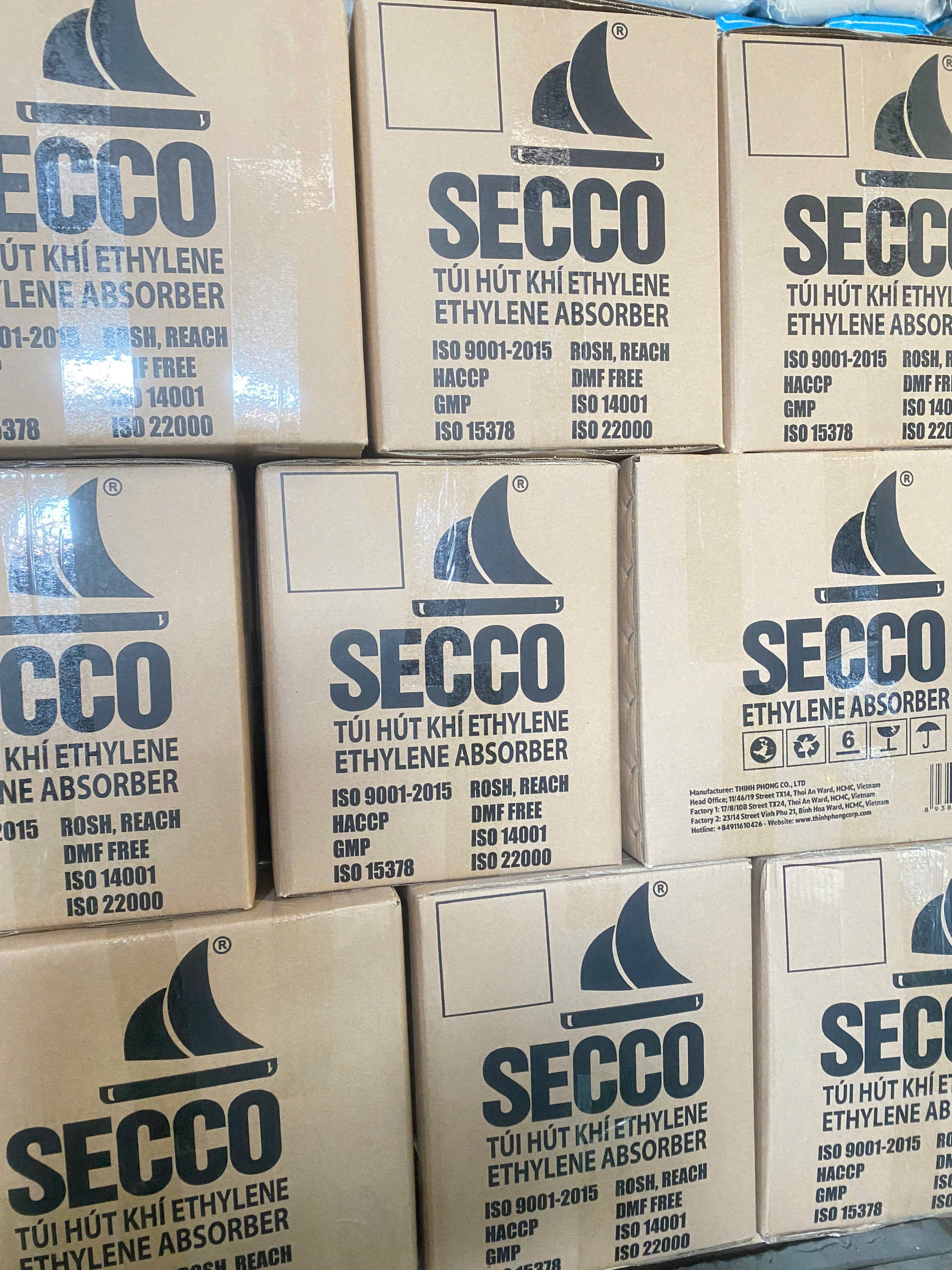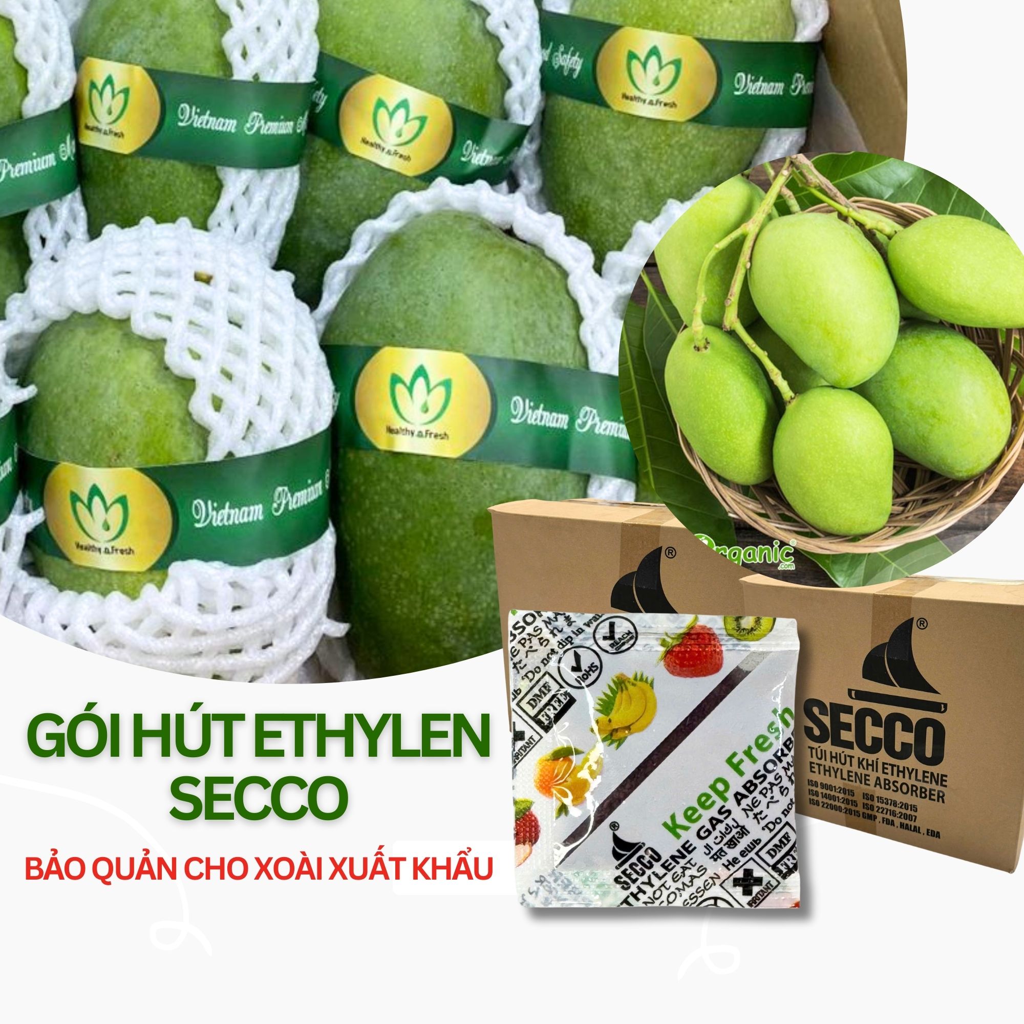 Gói Hút Khí Ethylene Secco 5g Sản Phẩm giúp chống chín, Giữ tươi lâu cho Xoài Tươi Xuất Khẩu. Tăng Uy Tín Thương Hiệu, Giúp Trái Cây Đạt Chuẩn Xuất Khẩu. Secco là lựa chọn của các chuyên gia nông nghiệp: