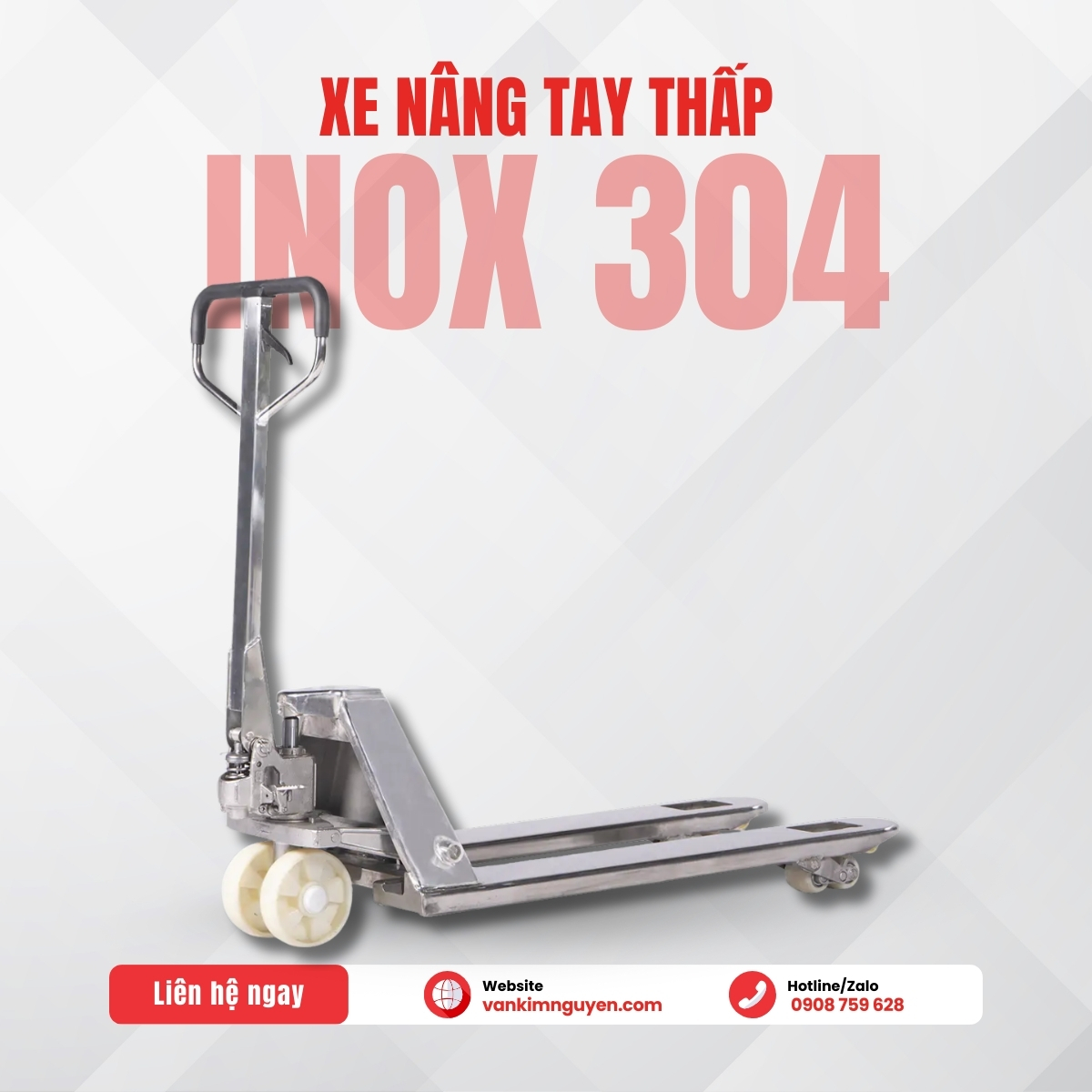 4. Nên chọn xe nâng tay inox hay xe nâng điện inox? Việc chọn loại xe nào phụ thuộc vào quy mô kho hàng, tần suất sử dụng và ngân sách đầu tư của doanh nghiệp. Nếu bạn là doanh nghiệp nhỏ hoặc vừa, chủ yếu vận chuyển hàng trong khu vực hẹp, tần suất sử dụng trung bình → xe nâng tay thấp bằng inox 304 là lựa chọn tối ưu. Xe bền, dễ bảo trì và phù hợp môi trường ẩm hoặc lạnh. Nếu bạn quản lý kho lớn, cần di chuyển liên tục với tải trọng nặng hoặc muốn tự động hóa quy trình → xe nâng điện inox sẽ giúp tiết kiệm nhân công và tăng năng suất dài hạn. Một số doanh nghiệp hiện nay còn kết hợp cả hai loại xe, dùng xe nâng tay inox cho khu vực lạnh hoặc nhỏ hẹp, và xe nâng điện inox cho khu vực trung chuyển hoặc xuất hàng. Cả xe nâng tay thấp inox 304 và xe nâng điện inox đều có ưu điểm riêng, nhưng nếu xét về độ bền, khả năng chống gỉ và tính kinh tế, xe nâng tay inox vẫn là lựa chọn hàng đầu cho kho lạnh và khu vực sạch. Trong khi đó, xe nâng điện inox phù hợp cho doanh nghiệp lớn muốn nâng cao năng suất và tối ưu quy trình tự động. Nếu bạn đang tìm mua xe nâng tay inox 304 chính hãng, giá tốt, hãy truy cập https://vankimnguyen.com/ – đơn vị chuyên cung cấp xe nâng inox, xe nâng điện, và phụ tùng xe nâng với nhiều tải trọng và mẫu mã khác nhau. >>>> Xe ngay: https://vankimnguyen.com/xe-nang-tay-inox-304.html