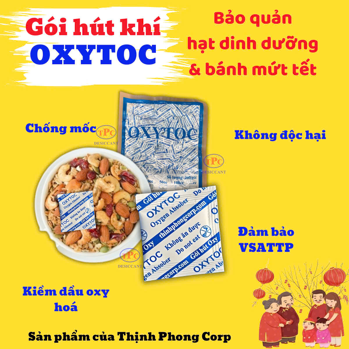 Oxytoc không tỏa mùi, không ảnh hưởng đến chất lượng sản phẩm và hoàn toàn phù hợp với thực phẩm thủ công như: mứt dừa, mứt bí, kẹo gừng, bánh mè xửng, bánh quy… Đây là lý do nhiều cơ sở tin tưởng sử dụng trong suốt mùa Tết.