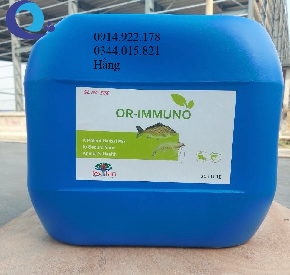 Or- Immuno - Hỗn hợp thảo dược từ bột tỏi, hỗ trợ gan, thay thế kháng sinh, bảo vệ sức khỏe vật nuôi hữu hiệu Thành Phần: – Dầu Moringa (chùm ngây) – Chiếc xuất nhân sâm – Chiếc xuất Origanum (Hoa kinh giới) – Chiếc xuất tỏi – Vitamin E – Dầu Castor (thầu dầu) Công Dụng: – Thay thế cho kháng sinh, giúp ngăn ngừa tình trạng kháng thuốc – kháng khuẩn, kháng virus, kháng nấm và kháng động vật nguyên sinh – Chữa các bệnh về đường tiêu hóa, chống viêm và tăng cường miễn dịch Liều Lượng – Cách Dùng: – Trộn cho ăn 250gr – 500ml/1 tấn thức ăn Quy Cách: 1 Lít/Chai, Thùng 10 Chai; 20 Lít/Can; 200 Lít/Phuy Bảo Quản: – Giữ kín ở nơi khô ráo, thoáng mát, tránh ánh sáng. – Tránh xa tầm tay trẻ em. Nhà Sản Xuất: Tex Biosciences (P) Limited – Ấn Độ ------------------------ Quý Khách Hàng quan tâm sản phẩm vui lòng liên hệ để biết thêm thông tin: Công Ty Cổ Phần BQ&Q Địa chỉ: H75, KDC Thới An, Đ. Lê Thị Riêng, P.Thới An, Quận 12, TPHCM Điện thoại/ Zalo: 0344 015 821 / 0914 922 178 (Thanh Hằng)