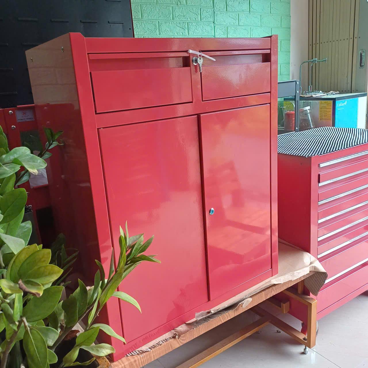 Tủ Đồ Nghề 5 Ngăn 1 cánh Kèm Giá Treo Đồ Nghề Thông Số Kỹ Thuật: • Kích thước tổng thể: 980x500x1500mm (bảng treo - 980mm x700mm) • Chất liệu: sắt 1ly, bề mặt phủ sơn tĩnh điện • Màu sắc: Đỏ đen • Số ngăn chứa: 5 ngăn kéo lớn, 1 ngăn có cánh cửa mở để có thể điều chỉnh để phù hợp với từng loại dụng cụ • Giá treo: Có giá treo chắc chắn ở phía trên tủ, thích hợp để treo các đồ nghề thường xuyên sử dụng như búa, cờ lê, hoặc các công cụ nhỏ khác.
