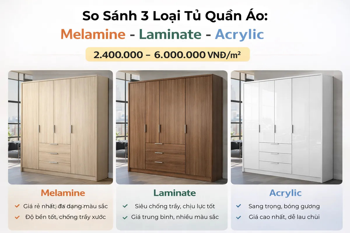 👗💰 GIÁ TỦ QUẦN ÁO THEO m² 2026 – TỪ 2.4 ĐẾN 6 TRIỆU/m²?