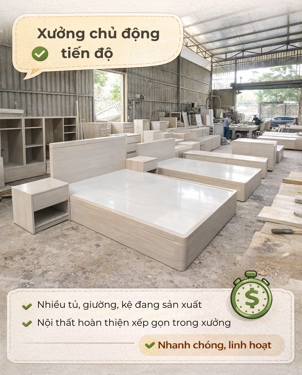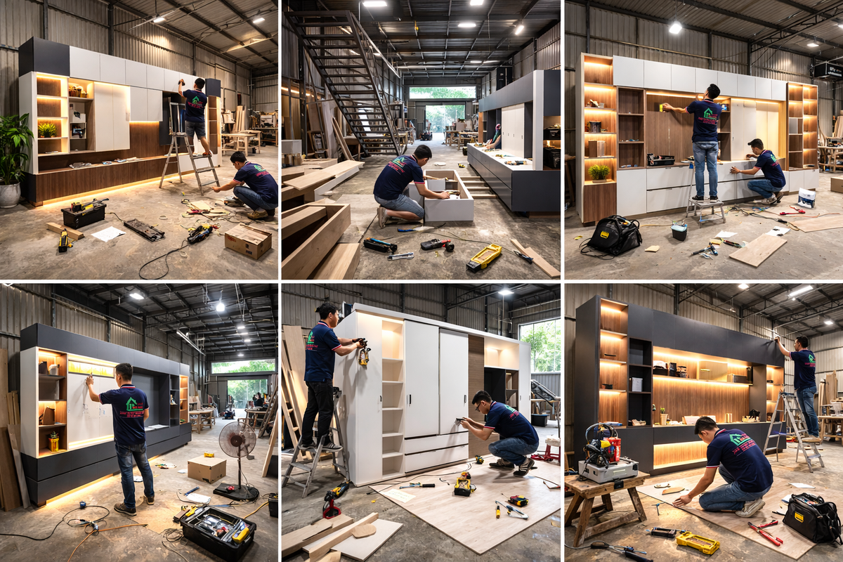 👉 Xưởng nội thất ✔ Sản xuất trực tiếp – giá thường tốt hơn ✔ Dễ tùy chỉnh kích thước & vật liệu ✔ Phù hợp các hạng mục như tủ bếp, tủ áo, kệ TV…