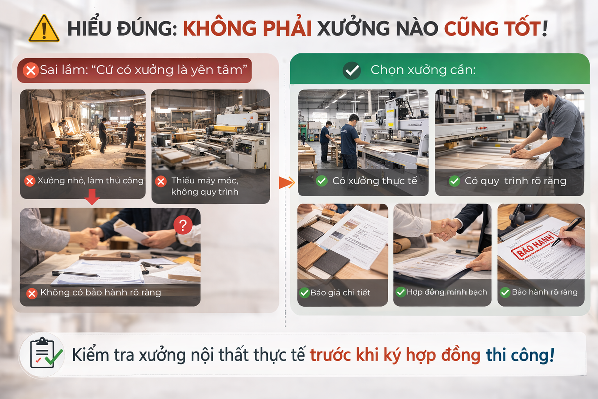 Khi làm nội thất, nhiều gia chủ thường phân vân: nên chọn xưởng sản xuất hay công ty nội thất? 🤔