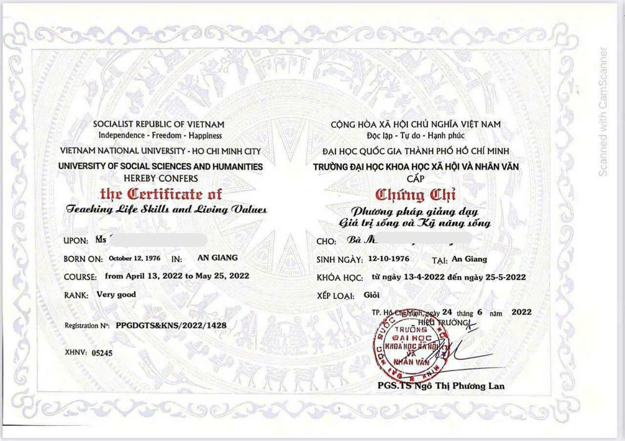 KHOÁ BỒI DƯỠNG NGHIỆP VỤ GIÁO DỤC GIÁ TRỊ SỐNG VÀ KĨ NĂNG SỐNG (KNS) - Thời gian học: tối thứ 2 – 4 – 6 (từ 19h30) 🎓 Trường Đại học Sư phạm Hà Nội 2 cấp chứng nhận 🎓 Trường Đại học Khoa học xã hội và nhân văn cấp chứng chỉ 💥 Đối tượng bồi dưỡng: - Giảng viên các trường cao đẳng và đại học, giáo viên mầm non, giáo viên tiểu học/THCS/THPT và giáo viên các Trung tâm giáo dục thường xuyên. - Cán bộ làm công tác đoàn, đội của xã, phường, quận, huyện, thành phố. - Các đối tượng khác có nhu cầu về bồi dưỡng nghiệp vụ giáo dục giá trị sống và kỹ năng sống. 💻 Hình thức học: Online -------------------------------------------------- ☎️ Thông tin chi tiết vui lòng liên hệ: 0982 787 881 - cô Linh