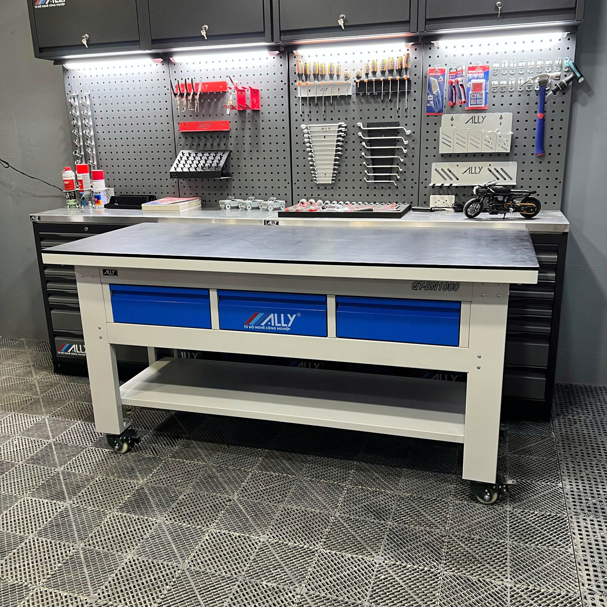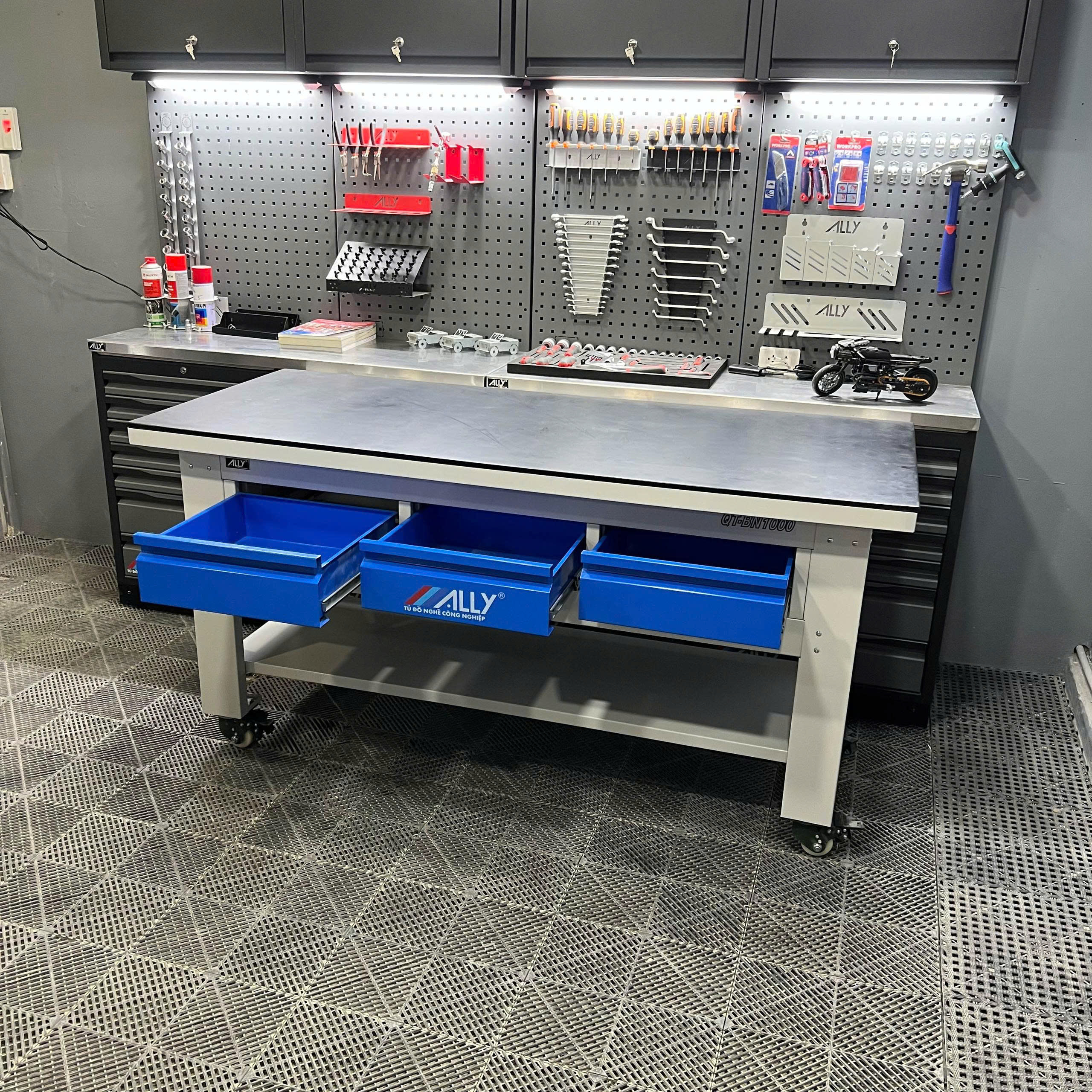 Trong số các dòng bàn cơ khí hiện nay, bàn nguội ALLY QT-BN1000 đang là lựa chọn hàng đầu của nhiều doanh nghiệp, xưởng sản xuất, gara sửa chữa và khu bảo trì kỹ thuật.