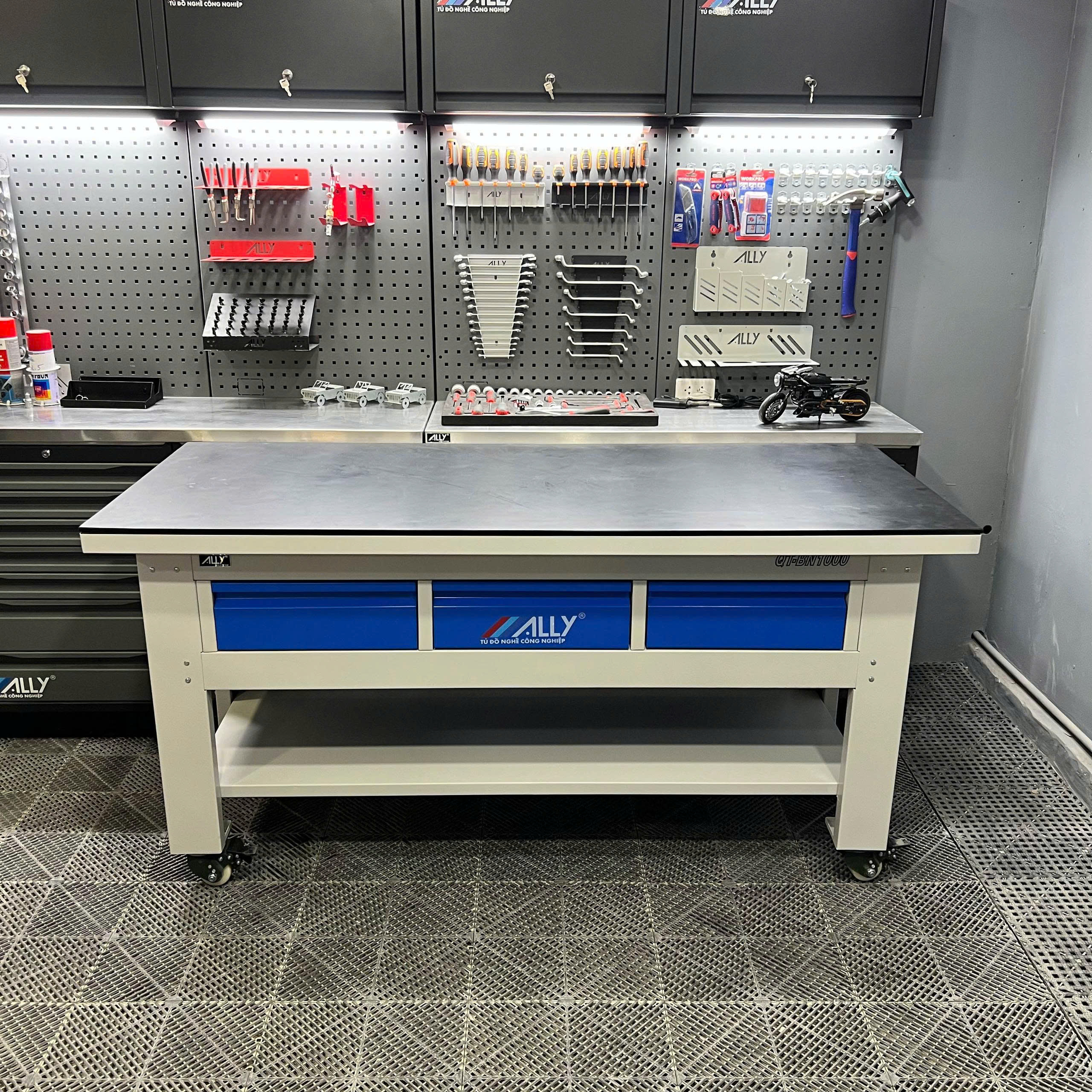 Phòng kiểm tra, sửa chữa, bảo trì máy móc – khi cần mặt bàn lớn, chịu lực tốt và lưu trữ dụng cụ chuyên nghiệp. Liên hệ ngay để nhận tư vấn & báo giá tốt nhất! Hotline: 0931 777 428