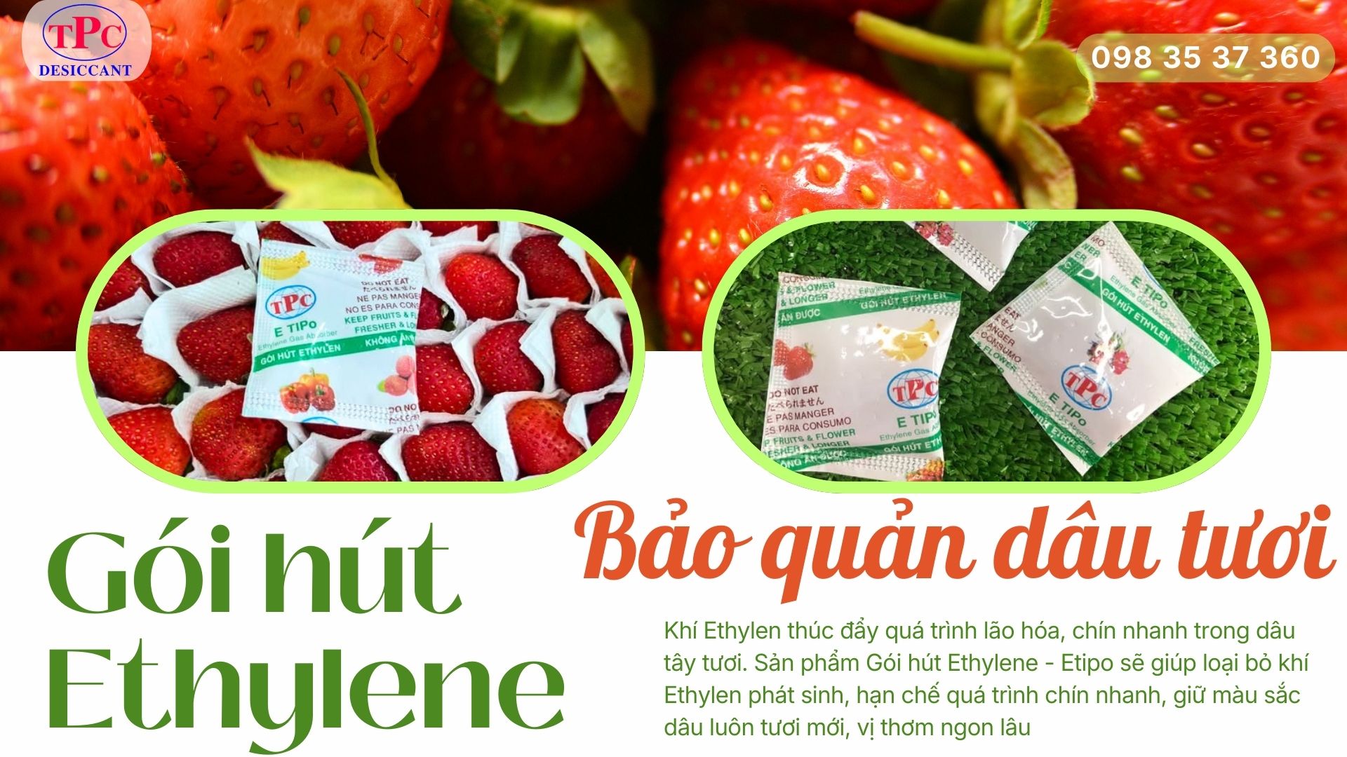 Trong bảo quản trái cây, khí ethylen được xem là “tác nhân chín” tự nhiên. Đối với dâu tươi – loại quả có cấu trúc mềm và thời gian bảo quản ngắn – việc kiểm soát khí ethylen đóng vai trò then chốt để giữ chất lượng sản phẩm.