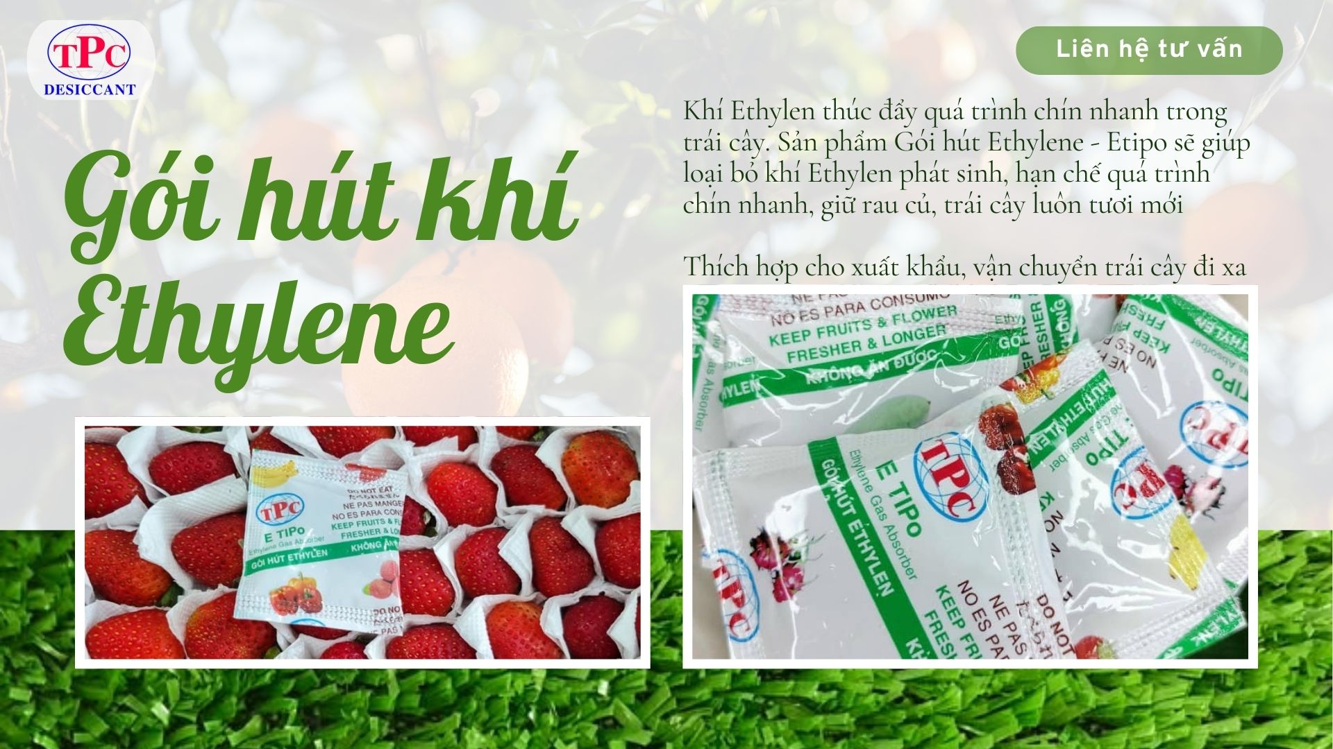 Trong môi trường kín như khay bọc màng, thùng carton hoặc container lạnh, khí ethylen dễ tích tụ và khiến dâu chín nhanh hơn bình thường. Vì vậy, sử dụng gói hút khí ethylen bảo quản dâu tươi là giải pháp hiệu quả giúp kiểm soát khí chín và kéo dài thời gian bảo quản.