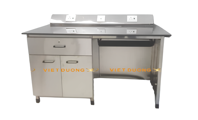 Mặt bàn: -Vật liệu tấm inox SUS 304 không gỉ dày 1,2mm, loại chuyên dùng cho phòng thí nghiệm.
