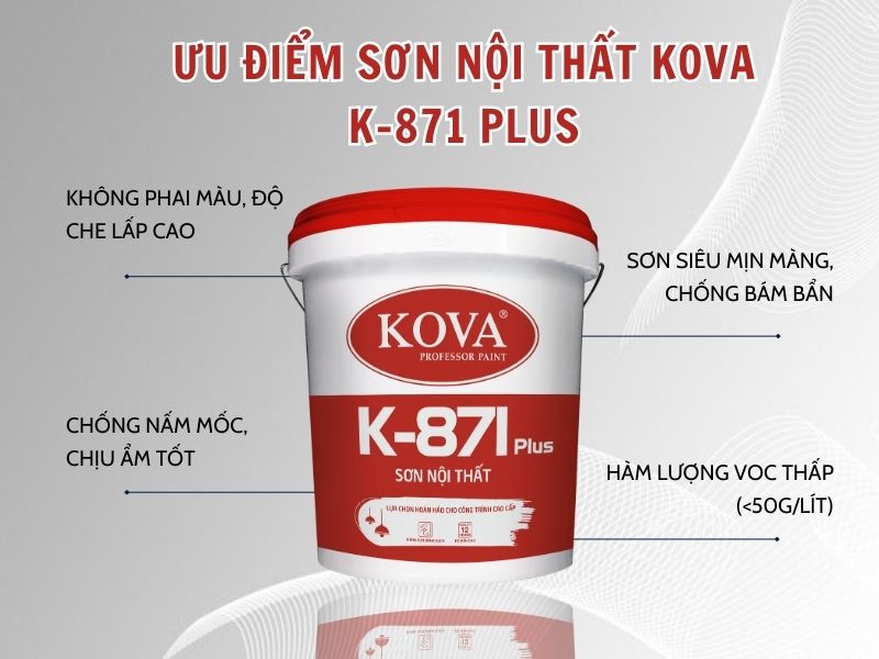 Tổng đại lý bán Sơn nội thất KOVA K-203 Plus Mờ cho tường trong nhà chính hãng giá rẻ tại TPHCM Liên hệ 0917041838 Ms Hồng Châu – Phòng tư vấn và bán hàng MÔ TẢ SẢN PHẨM Sơn Nội Thất KOVA K-203 Plus Sơn nội thất KOVA K-203 là sơn hệ Styren Acrylic phủ trong nhà với bề mặt mịn đẹp, đã hoàn toàn nhiệt đới hóa, rất phù hợp với khí hậu nóng ẩm của Việt Nam. Phù hợp với nhiều loại bề mặt của tất cả các công trình xây dựng dân dụng và công nghiệp. ĐẶC TÍNH VƯỢT TRỘI Sơn Nội Thất KOVA K-203 Plus Chất lượng màu sắc luôn ổn định, không phai màu. Bề mặt mờ Bề mặt sơn bền, mịn màng, không bong tróc, có khả năng chịu chùi rửa. Độ phủ tốt, khô nhanh, dễ thi công. Không cháy, không độc hại, không chứa chì, thủy ngân và các hóa chất độc hại khác, an toàn với người thi công và sử dụng. Hàm lượng VOC thấp (