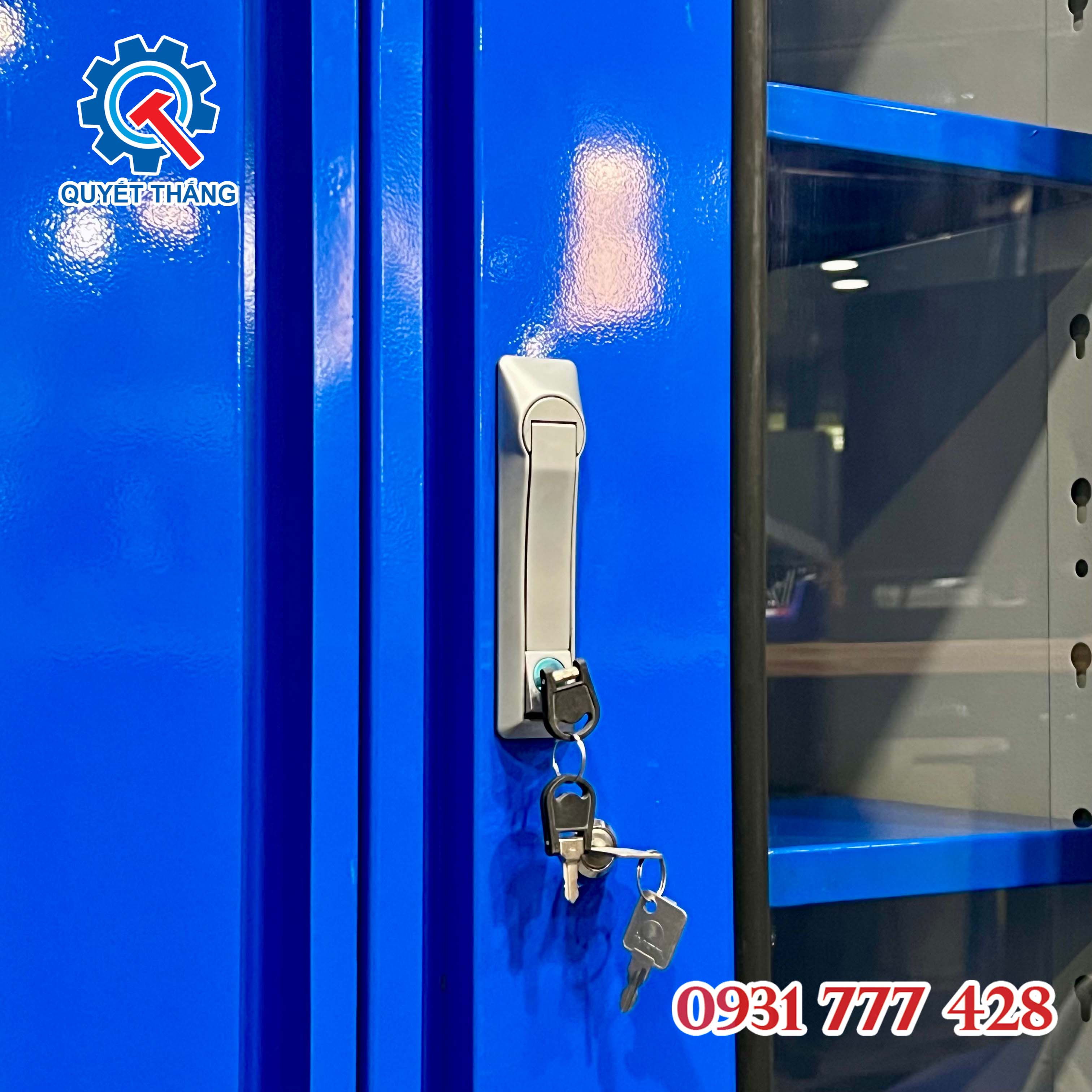 Nhờ thiết kế rộng rãi và cấu trúc thép vững chắc, tủ có thể đặt sát tường, gần bàn nguội, cạnh máy CNC, máy tiện, máy phay… mà vẫn đảm bảo tính đồng bộ của khu vực làm việc.