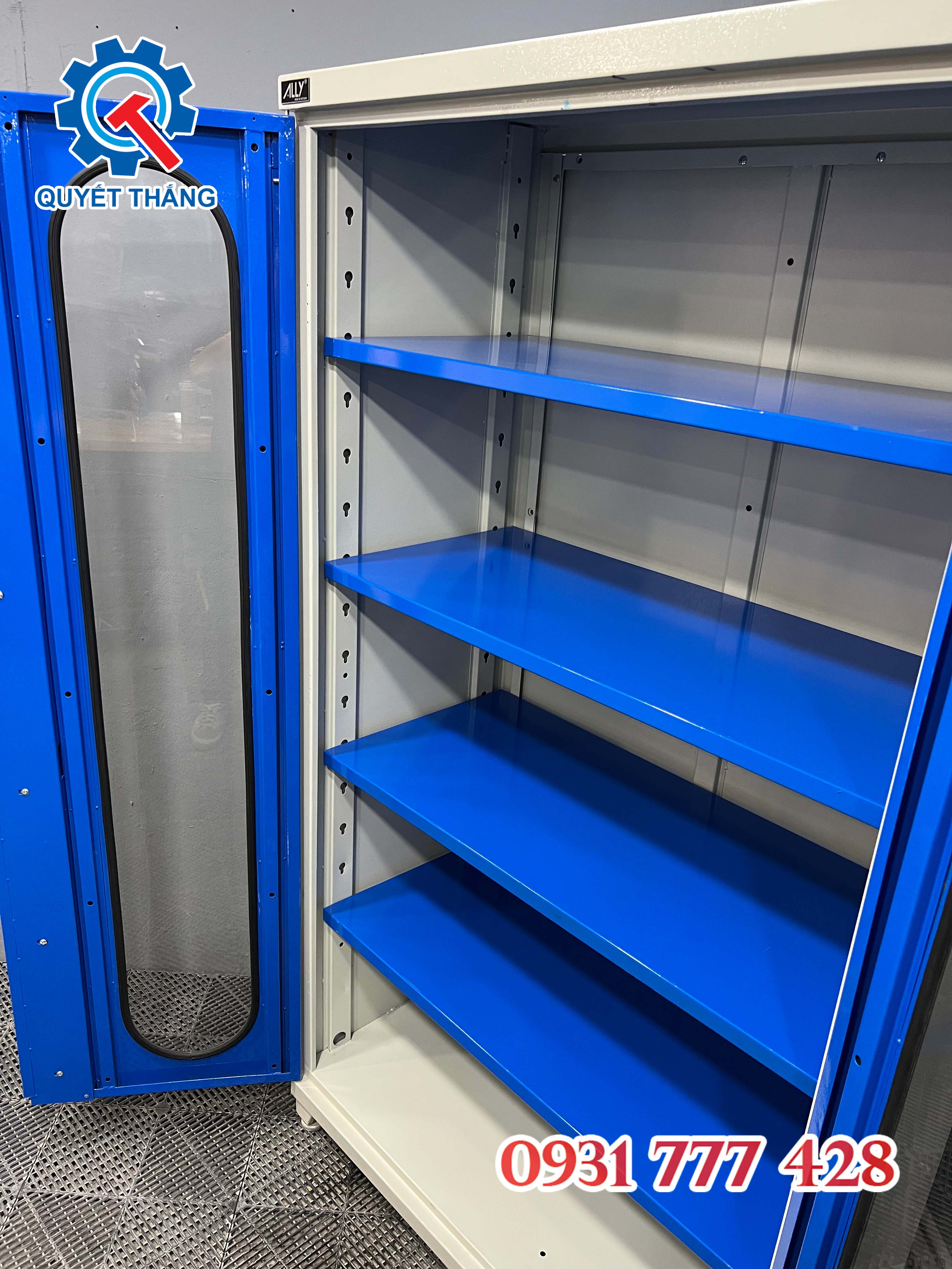 Cửa tủ: 2 cánh mở, thép kết hợp mica trong suốt giúp quan sát nhanh