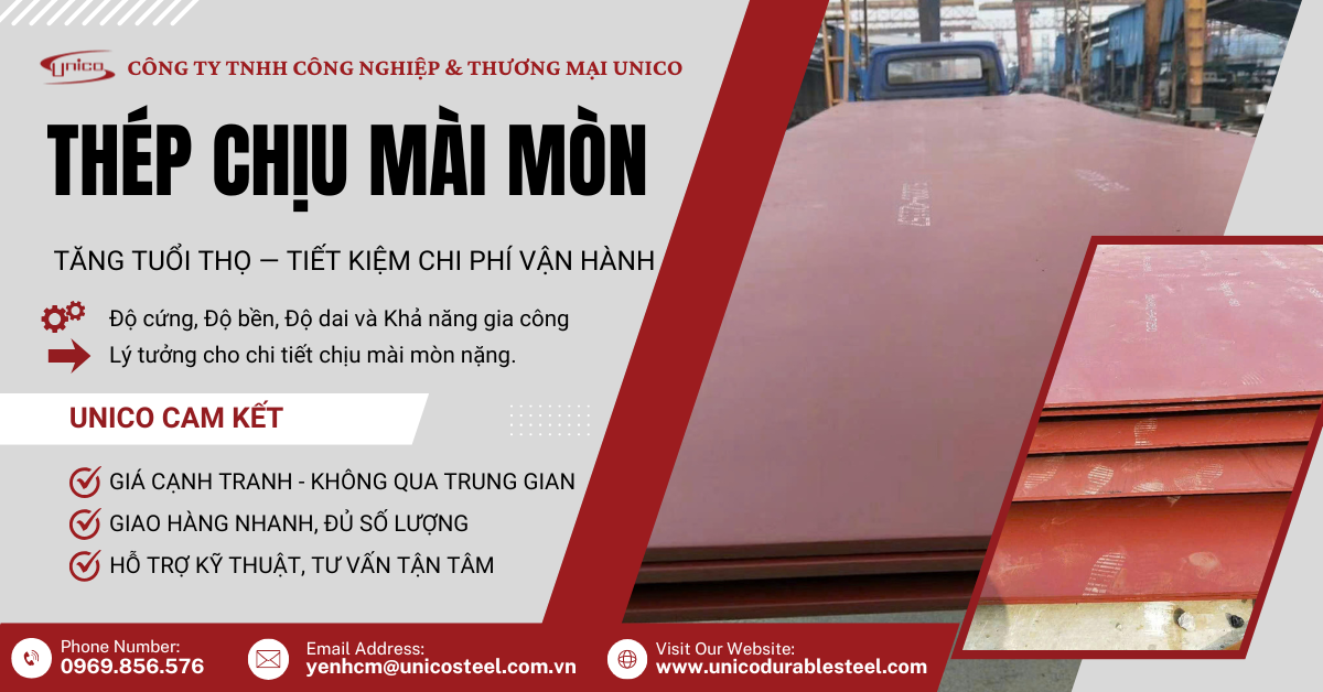 ⚙️ Thông tin sản phẩm: Mác thép: Hardox 400 / 450 / 500 Độ dày: 3mm – 120mm Kích thước: 1500×6000mm / 2000×8000mm hoặc cắt theo yêu cầu Tiêu chuẩn: GB / ASTM / JIS tương đương Xuất xứ: Trung Quốc Bề mặt: Cán nóng / tẩy gỉ / sơn phủ chống gỉ ✅ Ưu điểm nổi bật: Độ cứng cao, chống mài mòn gấp nhiều lần thép thường Tăng tuổi thọ thiết bị, giảm chi phí bảo trì Gia công, hàn, cắt linh hoạt theo bản vẽ yêu cầu Phù hợp cho điều kiện làm việc khắc nghiệt: va đập, mài mòn, tải trọng cao 🏗️ Ứng dụng thực tế: Tấm lót gầu xúc, thùng xe ben, phễu cấp liệu Máng trượt, tấm lót máy nghiền, dao nghiền Băng tải, silo xi măng, bồn chứa vật liệu rắn 💯 Cam kết từ Unicosteel: Hàng nhập khẩu trực tiếp từ nhà máy Trung Quốc, chứng từ CO/CQ đầy đủ Giá cạnh tranh, không qua trung gian Cắt – gia công – hàn theo yêu cầu bản vẽ Giao hàng nhanh trên toàn quốc Tư vấn kỹ thuật miễn phí bởi đội ngũ chuyên môn trong ngành cơ khí 📞 Liên hệ ngay để nhận báo giá và tư vấn chi tiết: Hotline: 0969.856.576 (Ms. Yến)
