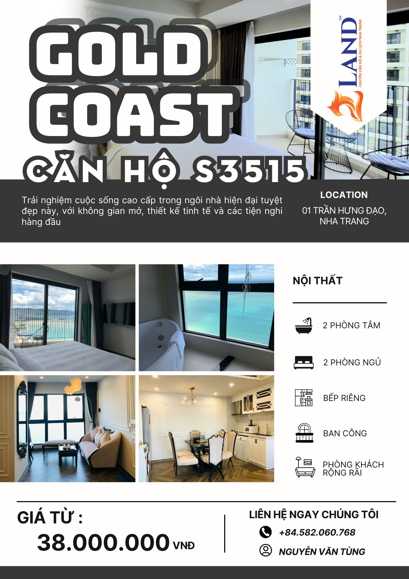 ✨ Căn hộ Gold Coast – S3515 cho thuê Trải nghiệm cuộc sống cao cấp trong không gian hiện đại, mở thoáng, thiết kế tinh tế cùng tiện nghi đầy đủ. 📍 Địa chỉ: 01 Trần Hưng Đạo, TP. Nha Trang 🔹 Nội thất bao gồm: 🛁 2 Phòng tắm 🛏️ 2 Phòng ngủ 🍳 Bếp riêng 🌅 Ban công rộng 🛋️ Phòng khách thoáng sáng 📞 Liên hệ ngay: +84.582.060.768 (Tùng)