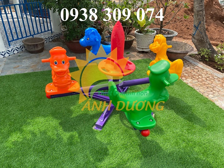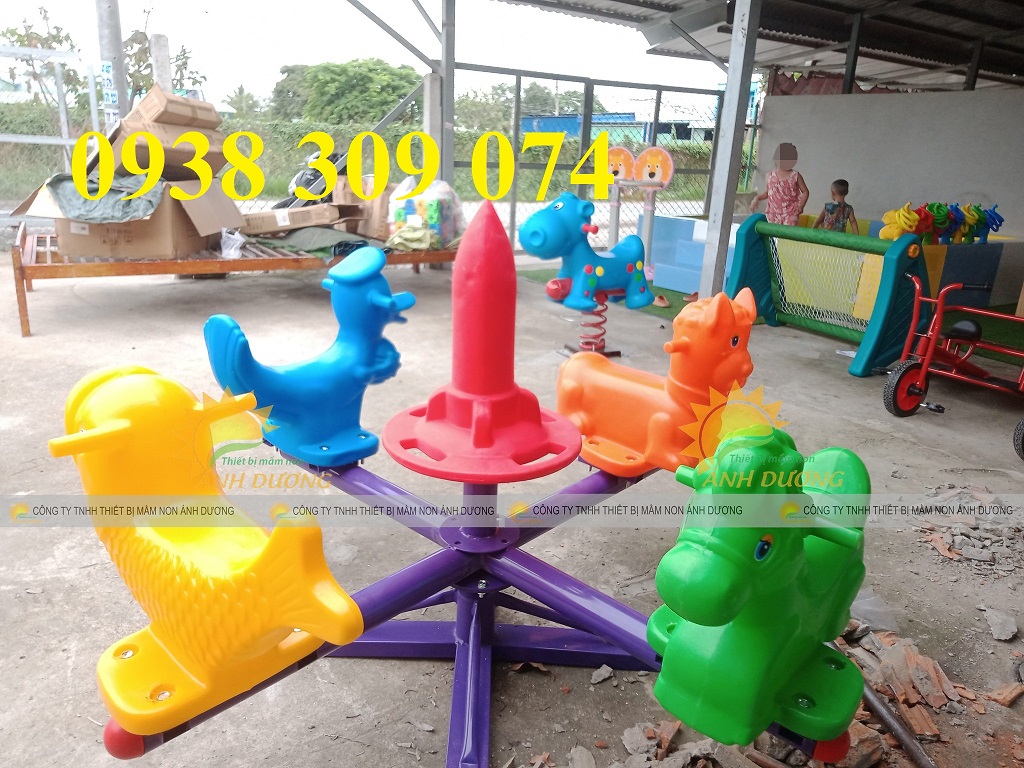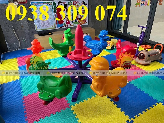 ĐU QUAY TRẺ EM NHẬP KHẨU Đu quay cho bé gồm : đu quay 4 chỗ ngồi, đu quay 6 chỗ ngồi Đu quay trẻ em là thiết bị vui chơi thường thấy trong các trường mầm non và khu vui chơi công cộng. Đu quay trẻ em được thiết kế dựa trên nguyên lý quay xung quanh một trục trung tâm, đảm bảo an toàn và chắc chắn. Chất liệu: sắt sơn tĩnh điện, con vật bằng nhựa nhựa đúc nguyên khối. Các vật liệu này có độ bền cao, chống gỉ sét và chịu được điều kiện thời tiết khắc nghiệt. CÔNG TY THIẾT BỊ MẦM NON ÁNH DƯƠNG 54/19 Bùi Quang Là, Phường 12, Gò Vấp, Tp. Hồ Chí Minh 5/5 Tô Ký, ấp mới 2, Trung Chánh, Hóc Môn, TP.HCM HOTLINE: 0938 309 074