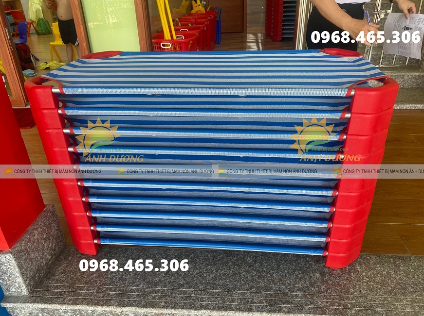 Có thể xếp chồng gọn để tiết kiệm không gian Giường lưới mầm non giúp bé ngủ ngon, thoáng mát là sản phẩm không thể thiếu trong các lớp học mầm non. Giường lưới phù hợp cho bé ở độ tuổi mầm non. Chất liệu bền chắc, khung thép sơn tĩnh điện, lưới thoáng khí, dễ dàng vệ sinh. Sản phẩm có kích thước, kiểu dáng đa dạng, đáp ứng nhu cầu của gia đình và trường học. -------------------------------- CÔNG TY TNHH THIẾT BỊ MẦM NON ÁNH DƯƠNG Địa chỉ : 5/5 Tô Ký, Trung Chánh, Hóc Môn, HCM Fanpage : THIẾT BỊ VUI CHƠI Zalo : 0968.465.306 - Vi Hạnh