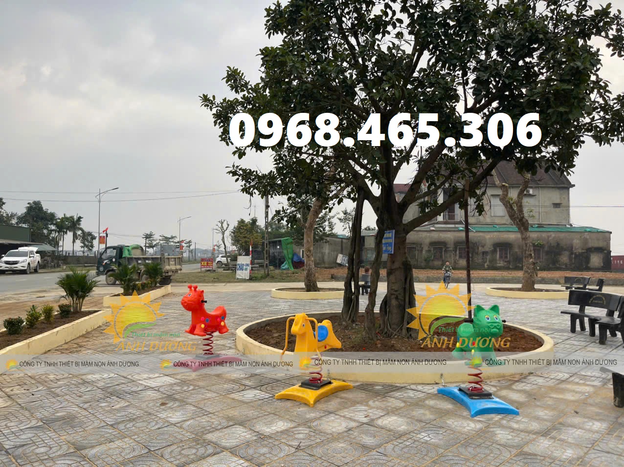 Đế bằng bê tông phủ lớp nhựa composite. Phần chân đế chắc chắn được làm bằng bản mã dập dày dặn, chắc chắn và được cố định bằng vít lỏ sắt có khả năng chịu lực tốt. Phần lò xo có độ đàn hồi tốt, vừa làm bệ đỡ cho bé vừa giúp tạo độ nhún cho sản phẩm. Vì vậy sản phẩm luôn bền bỉ, chắc chắn dù sử dụng bất cứ nơi nào dù trong nhà hay ngoài trời. Thú nhún lò xo được làm từ chất liệu nhựa composite,kết cấu chắc chắn, an toàn, cực kì bền bỉ với điều kiện khí hậu Việt Nam, đảm bảo an toàn cho các bé Thú nhún đa dạng về mẫu mã, màu sắc.