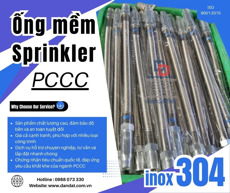 Ống Mềm Chữa Cháy Dân Đạt – Giải Pháp Hiệu Quả Cho Hệ Thống PCCC Hệ thống phòng cháy chữa cháy (PCCC) là yếu tố quan trọng trong bảo vệ an toàn công trình. Ống mềm chữa cháy Dân Đạt - Ống mềm kết nối đầu phun sprinkler, với thiết kế linh hoạt và chất liệu inox cao cấp, là lựa chọn tối ưu cho các hệ thống sprinkler – thiết bị PCCC hiện đại.