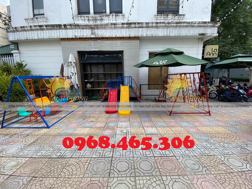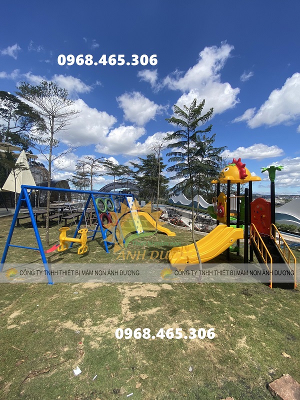 Trong khi các bậc phụ huynh có thể thư giãn, ngồi thưởng thức cà phê, giao lưu với bạn bè thì các bé cũng được thỏa sức vui chơi. + Sản phẩm bao gồm + Bộ liên hoàn cầu trượt - xích đu + Thang leo vận động đa năng + Bập bênh lò xo,... Một sân chơi ngoài trời cho trẻ em thường bao gồm: bộ cầu trượt liên hoàn ngoài trời, thú nhún lò xo ngoài trời, đồ chơi mầm non, xích đu ngoài trời và các dụng cụ thể thao ngoài trời khác v.v. Các sản phẩm phu hợp với khu vui chơi trẻ em ngoài trời chẳng hạn như: cầu trượt liên hoàn, cầu trượt phao, bạt nhún khổng lồ, thiết bị vận động thể chất, v.v. -------------------------------- CÔNG TY TNHH THIẾT BỊ MẦM NON ÁNH DƯƠNG Địa chỉ : 5/5 Tô Ký, Trung Chánh, Hóc Môn, HCM Fanpage : THIẾT BỊ VUI CHƠI Zalo : 0968.465.306 - Vi Hạnh