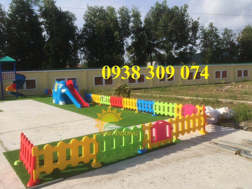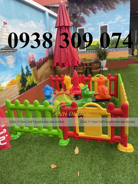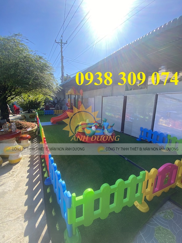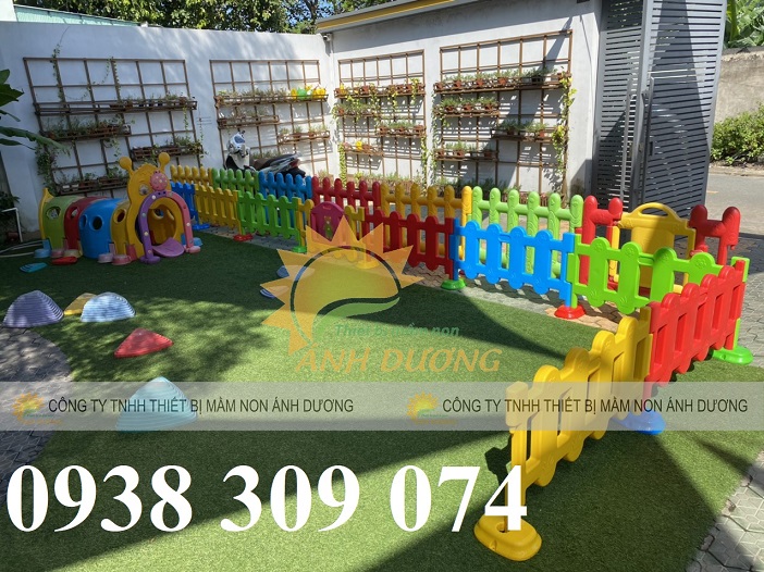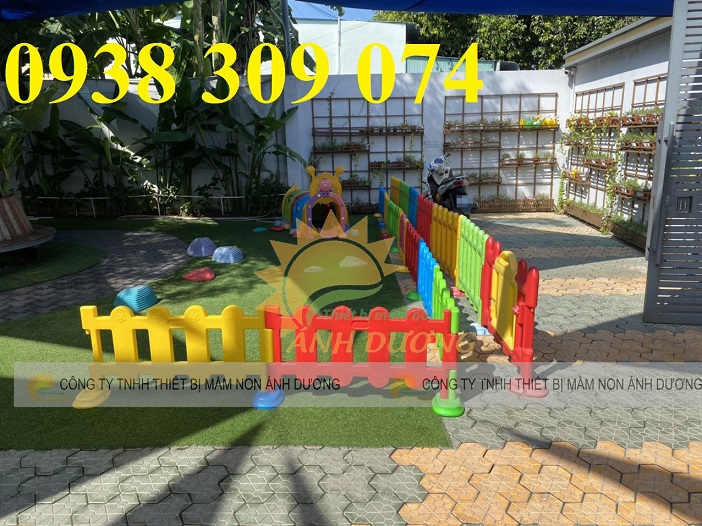 Hàng rào nhựa lắp ghép dành cho trẻ em Chất liệu: Nhựa PP hoặc LLDPE nguyên sinh, an toàn và bền bỉ. Thiết kế: Gồm nhiều mảnh ghép màu sắc khác nhau, dễ dàng tháo lắp và di chuyển. Kích thước: Mỗi miếng thường dài 100cm, cao từ 53cm đến 75cm. Ứng dụng: Sử dụng để tạo khu vực vui chơi an toàn trong trường mầm non, gia đình hoặc khu vui chơi trẻ em. CÔNG TY THIẾT BỊ MẦM NON ÁNH DƯƠNG 54/19 Bùi Quang Là, Phường 12, Gò Vấp, Tp. Hồ Chí Minh 5/5 Tô Ký, ấp mới 2, Trung Chánh, Hóc Môn, TP.HCM HOTLINE: 0938 309 074