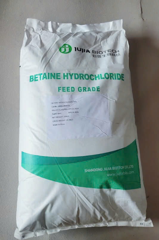 Thành phần: Betaine Hydrochloride (min) 98% Công dụng: – Có hoạt tính hấp dẫn, bổ sung vào thức ăn giúp kích thích khả năng thèm ăn và tăng tính ngon miệng cho tôm, cá – Có thể cung cấp methyl, với tư cách là nhà tài trợ methyl có thể thay thế một phần methionine và choline clorua, giảm chi phí thức ăn – Tăng cường khả năng tiêu hoá và hấp thu dinh dưỡng giúp tôm, cá mau phát triển – Có tác dụng bảo vệ nhất định đối với sự ổn định của Vitamin A và B, nâng cao hiệu quả sử dụng – Cải thiện việc sử dụng thức ăn, tham gia chuyển hóa chất béo và thúc đẩy sự phát triển vật nuôi