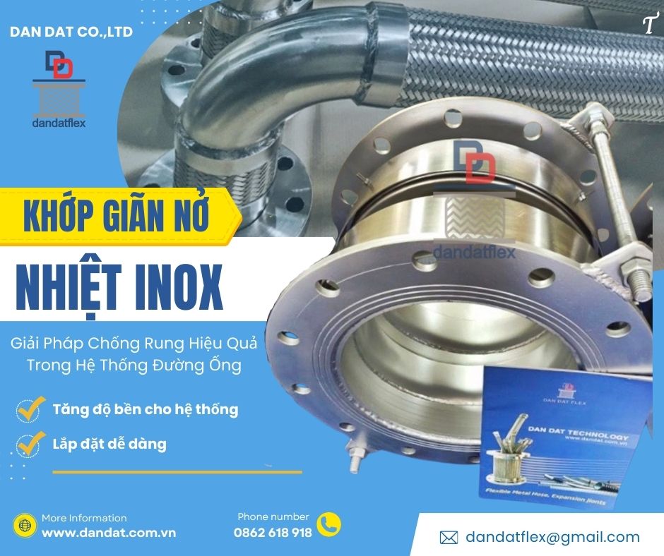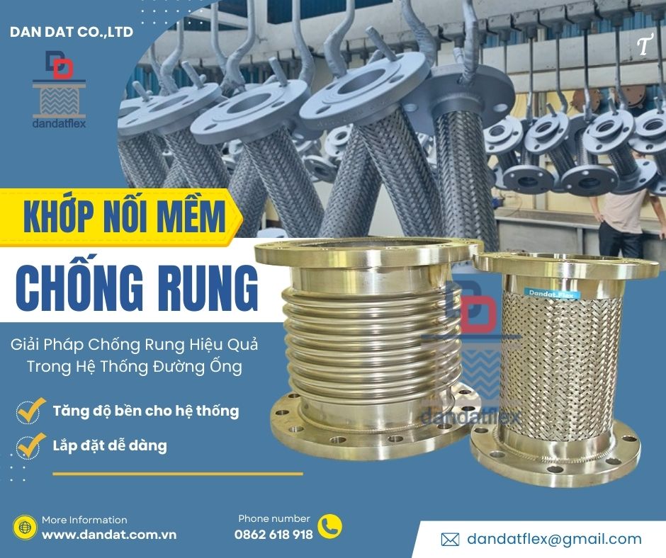 Khớp Nối Mềm Inox Dân Đạt – Giải Pháp Hiệu Quả Cho Hệ Thống Đường Ống Giới Thiệu Về Khớp Nối Mềm Inox Dân Đạt Khớp nối mềm inox Dân Đạt là một trong những sản phẩm chất lượng cao, chuyên dùng trong các hệ thống đường ống để giảm rung động, co giãn nhiệt và bảo vệ thiết bị. Với chất liệu inox cao cấp, sản phẩm này đảm bảo độ bền cao, chống ăn mòn tốt và hoạt động ổn định trong môi trường khắc nghiệt.