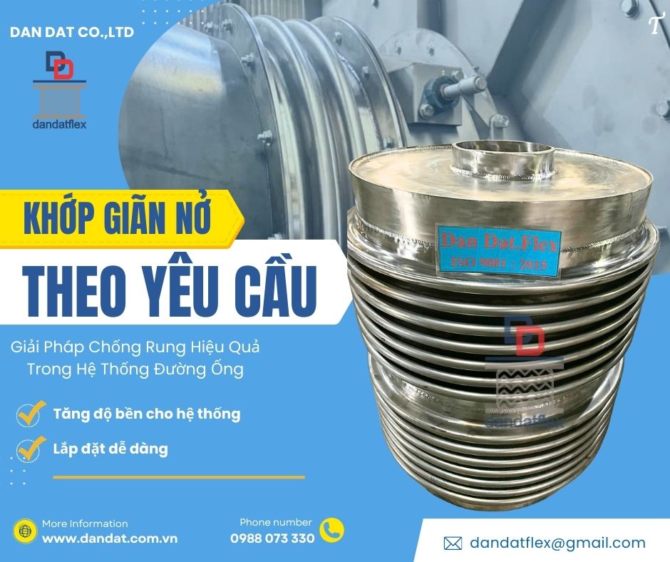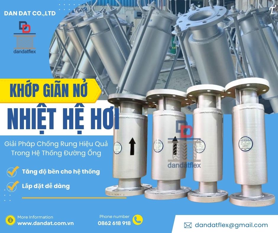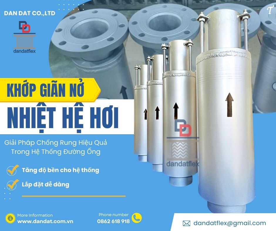 Khớp Nối Co Giãn Chịu Nhiệt – Giải Pháp Bảo Vệ Hệ Thống Ống Dẫn Trước Biến Động Nhiệt Độ Trong các hệ thống ống dẫn công nghiệp, việc thay đổi nhiệt độ liên tục có thể gây giãn nở hoặc co rút đường ống, dẫn đến nứt vỡ hoặc biến dạng nguy hiểm. Đó là lý do vì sao các công trình hiện đại luôn sử dụng khớp nối co giãn inox – còn được biết đến với nhiều tên gọi như khớp nối co giãn hơi nóng, khớp co giãn nhiệt, hay ống nối co giãn chịu nhiệt cao – để bảo vệ toàn hệ thống. Khớp nối co giãn là gì? Khớp nối co giãn (hay ống co giãn nhiệt, khớp co giãn có pasty, khớp co giãn dùng cho bơm tuần hoàn) là thiết bị cơ khí chuyên dùng để hấp thụ chuyển động giãn nở do thay đổi nhiệt độ trong hệ thống ống dẫn. Với thiết kế dạng lượn sóng bằng inox, sản phẩm cho phép đường ống co giãn linh hoạt mà không gây áp lực lên các mối nối. Ưu điểm nổi bật của ống co giãn nhiệt inox: • Chịu nhiệt, áp lực cao: Vật liệu inox 304/316 giúp sản phẩm hoạt động bền bỉ trong môi trường nhiệt độ cao, ăn mòn hoặc rung động mạnh. • Tăng tuổi thọ hệ thống: Hấp thụ lực co giãn, chống nứt vỡ đường ống. • Linh hoạt lắp đặt: Có thể gắn theo kiểu mặt bích, ren hoặc hàn tùy theo nhu cầu. Ứng dụng của khớp nối co giãn kim loại đa dạng trong công nghiệp • Hệ thống hơi nước, nước nóng – lạnh trong nhà máy, chung cư. • Đường ống dài ở nhà máy xi măng, lọc dầu, nhiệt điện. • Các công trình yêu cầu bù trừ chuyển động do nhiệt hoặc rung lắc. Địa chỉ cung cấp khớp co giãn chịu áp cao uy tín Dân Đạt – đơn vị chuyên cung cấp khớp nối mềm, khớp giãn nở inox pasty, khớp co giãn kim loại, khớp co giãn chịu hóa chất chính hãng. Chúng tôi có đầy đủ chứng chỉ CO-CQ, hỗ trợ tư vấn kỹ thuật và thiết kế theo yêu cầu. Gọi ngay cho Dân Đạt để được báo giá nhanh chóng và nhận tư vấn giải pháp khớp nối phù hợp nhất cho công trình của bạn! Công Ty TNHH Sản Xuất – Thương Mại Và Dịch Vụ Dân Đạt